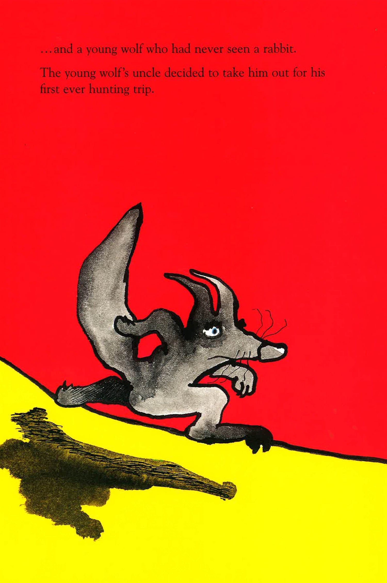 Once upon a time there was a rabbit who had never seen a wolf, and a young wolf who had never seen a rabbit. The pair meet and become firm friends. Tom the rabbit teaches Wolfy to play marbles, read, count, and fish. Wolfy teaches Tom to run very, very fast.