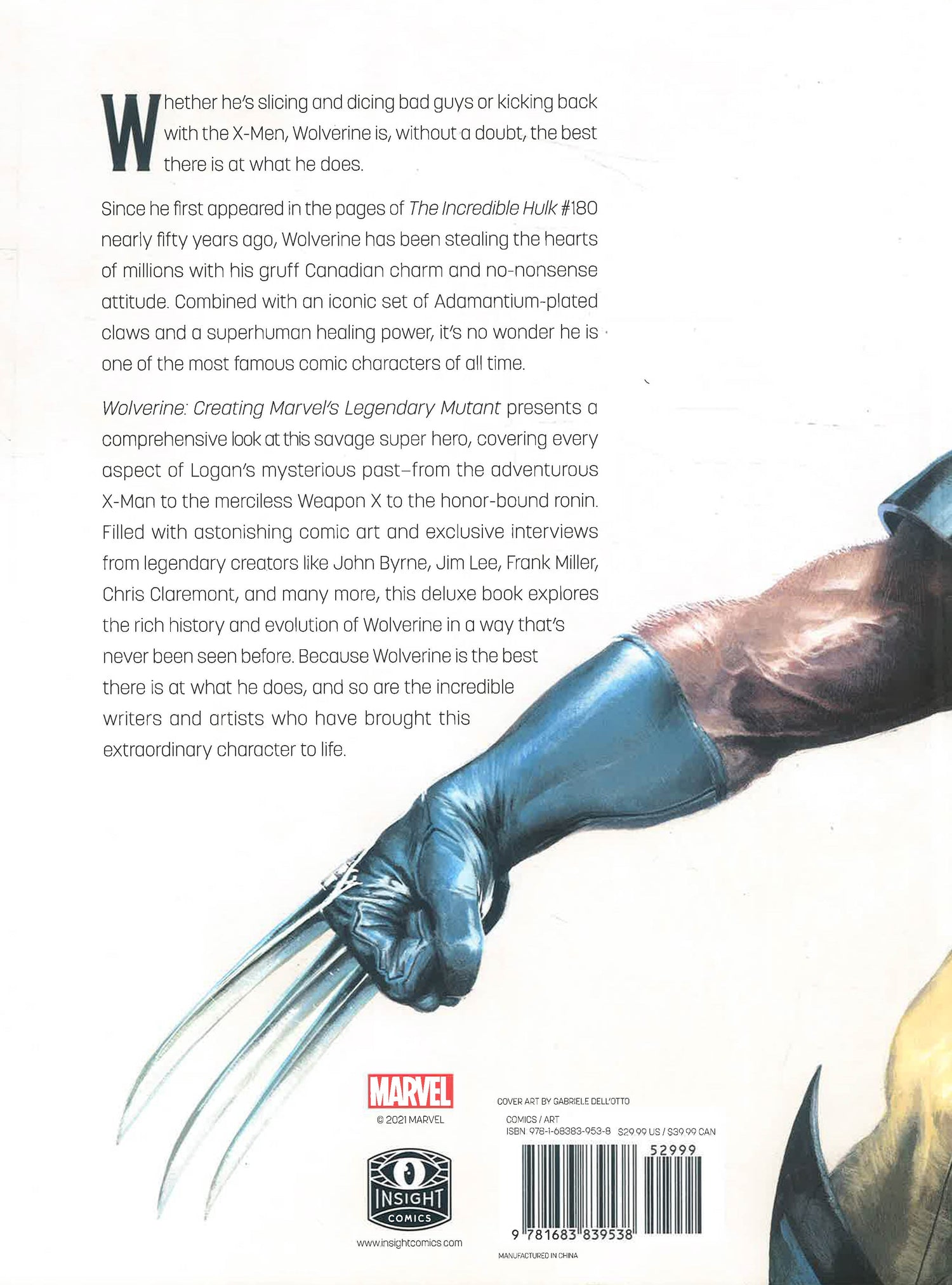 Now, for the first time ever, Wolverine: Creating Marvel's Legendary Mutant presents a comprehensive look at the the wild history of this savage mutant―diving deep into both the behind-the-scenes evolution of the character and showcasing the striking art of Wolverine comics. Highlighting iconic covers and stunning panel art in a deluxe format, this book also features exclusive interviews with legendary Marvel Comics creators. Covering everything from Wolverine’s iconic adamantium-plated claws to his integral history with X-Men, this exceptional volume offers fans the chance to discover their favorite Marvel hero in a whole new light, making it a must-have addition to any comic collector’s shelf.