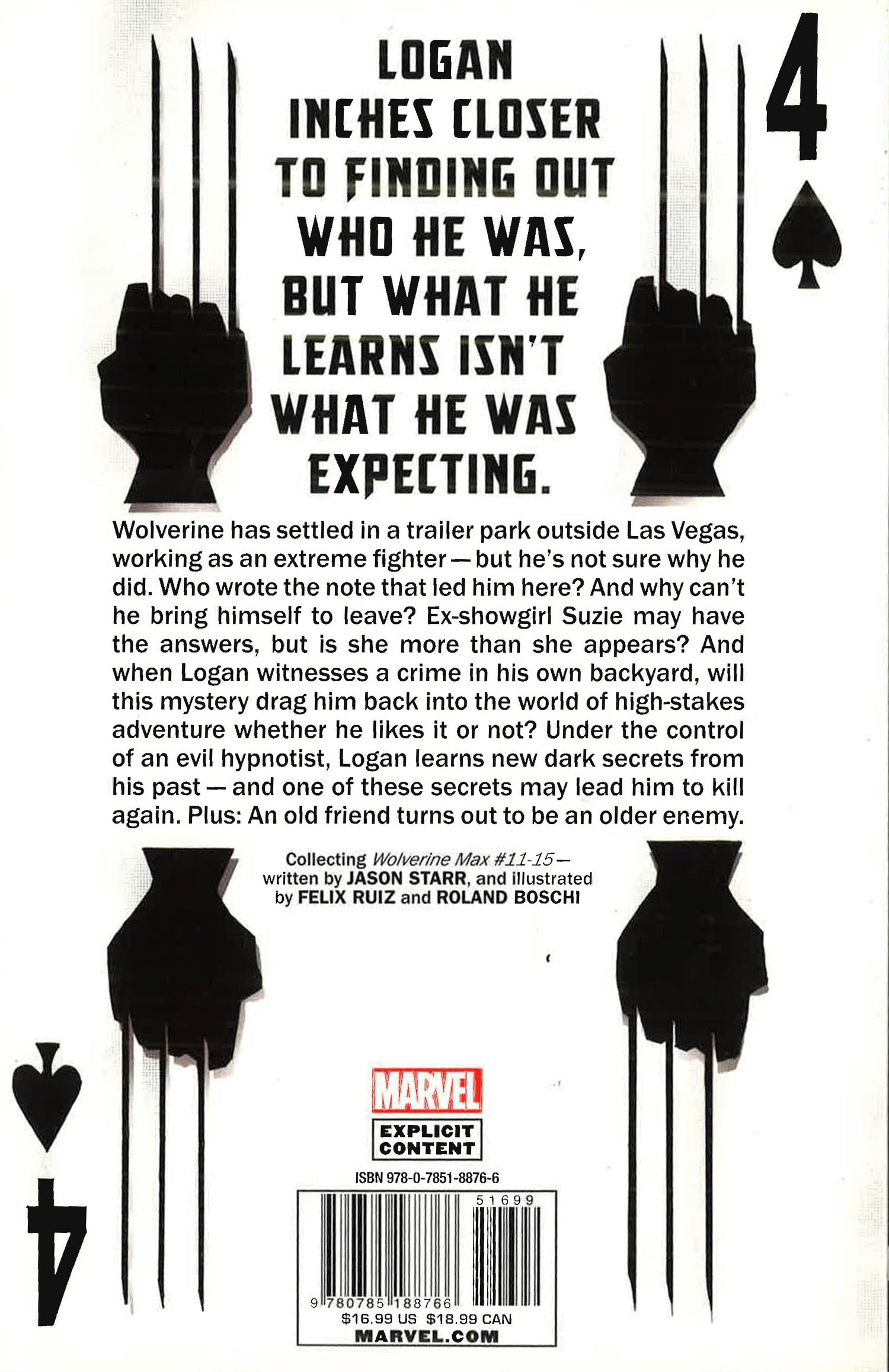 On the outskirts of the casinos and neon lights of Las Vegas is a world of trailer parks and tumbleweeds - a world that Wolverine wants to call home. There he finds work as an extreme fi ghter, taking out his aggressions for pay in abandoned warehouses and backwoods bars. But he's still not sure why he came to Sin City in the first place. Who wrote the note that led him here? And why can't he bring himself to leave? Suzie, an ex-showgirl from New Jersey, may have the answers - but is she more than she appears? When Logan witnesses a crime in his own backyard, everything comes to a head. Will this mystery drag him back into the world of high-stakes adventure whether he likes it or not? COLLECTING: WOLVERINE MAX 11-15