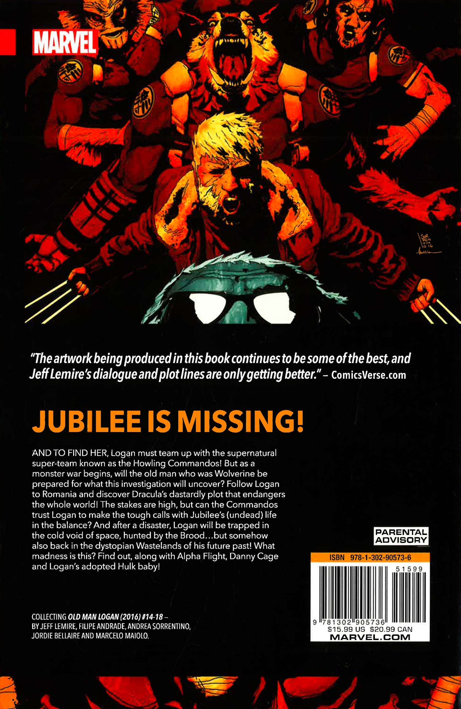 Jubilee is missing! And to find her, Logan will have to team up with a supernatural super-team - the Howling Commandos! But as a monster war begins, will the old man who was Wolverine be prepared for what this investigation will uncover? Follow Logan to Romania and discover Dracula's dastardly plot that endangers the whole world! The stakes are high, but with Jubilee's (undead) life in the balance, can the Commandos trust Logan to make the tough calls? COLLECTING: OLD MAN LOGAN 14-19