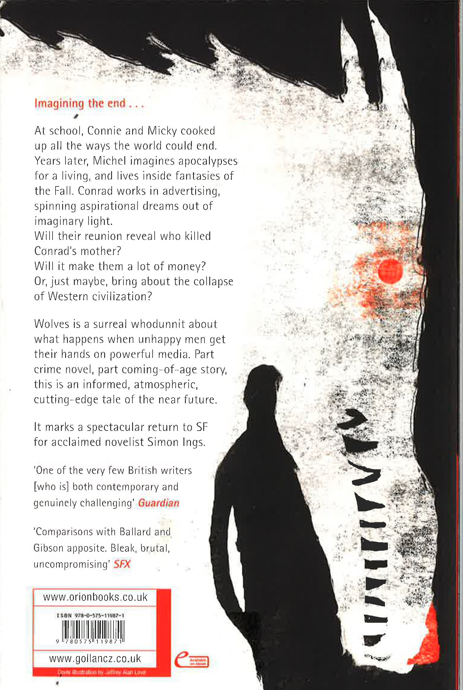 The new novel from Simon Ings is a story that balances on the knife blade of a new technology. Augmented Reality uses computing power to overlay a digital imagined reality over the real world. Whether it be adverts or imagined buildings and imagined people, with Augmented Reality the world is no longer as it appears to you, it is as it is imagined by someone else. Two friends are working at the cutting edge of this technology and when they are offered backing to take the idea and make it into the next global entertainment they realise that wolves hunt in this imagined world. And the wolves might be them. A story about technology becomes a personal quest into a changed world and the pursuit of a secret from the past. A secret about a missing mother, a secret that could hide a murder. This is no dry analysis of how a technology might change us, it is a terrifying thriller, a picture of a dark tomorrow that is just around the corner. Ings takes the satire and mordant satirical view of J.G. Ballard and propels it into the 21st century.