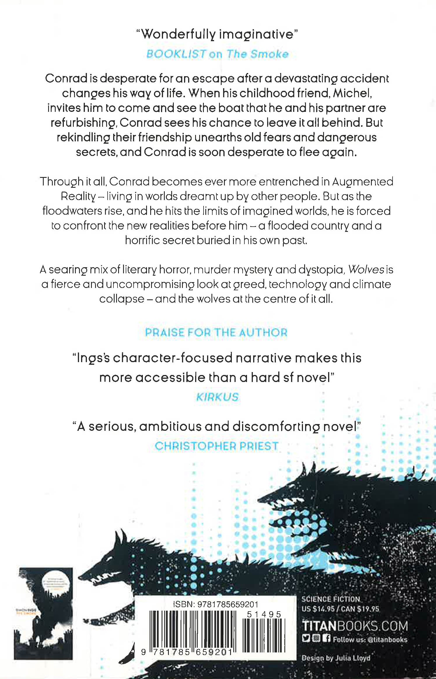 A searing mix of literary horror, murder mystery and dystopia, Wolves is a fierce and uncompromising look at greed, technology and climate collapse - and the wolves at the centre of it all.