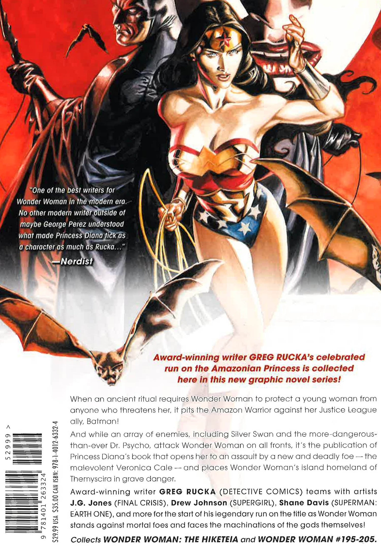 Eisner Award-winning author Greg Rucka's critically acclaimed run writing the Amazon Warrior is finally collected in its entirety, beginning in WONDERWOMAN BY GREG RUCKA VOL. 1! When Diana writes a book that shares her beliefs, it ignites a firestorm of controversy--and even gets the attention of the Olympian gods! Now Wonder Woman faces her most personal battle yet as she confronts attacks on all levels, from Veronica Cale to Dr. Psycho to Silver Swan and even the War God Ares himself! Collects WONDER WOMAN#195-213.
