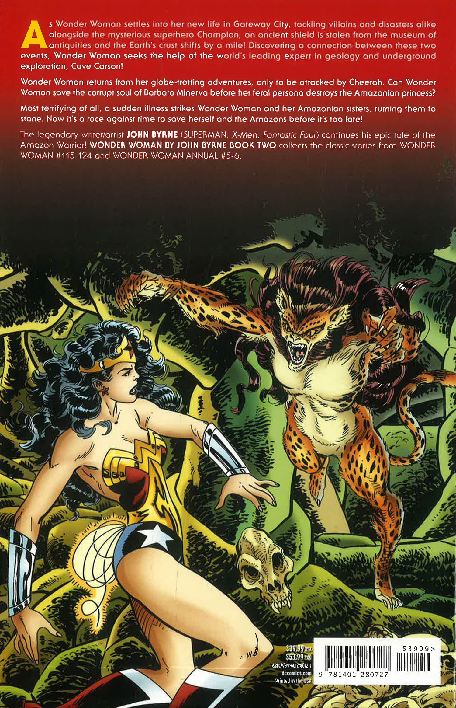 Writer and artist John Byrne (Superman, X-Men, Fantastic Four) continues his epic tale of the Amazon Warrior! Wonder Woman by John Byrne Vol. 2 collects the classic stories from Wonder Woman #115-124 and Wonder Woman Annual #5-6.
