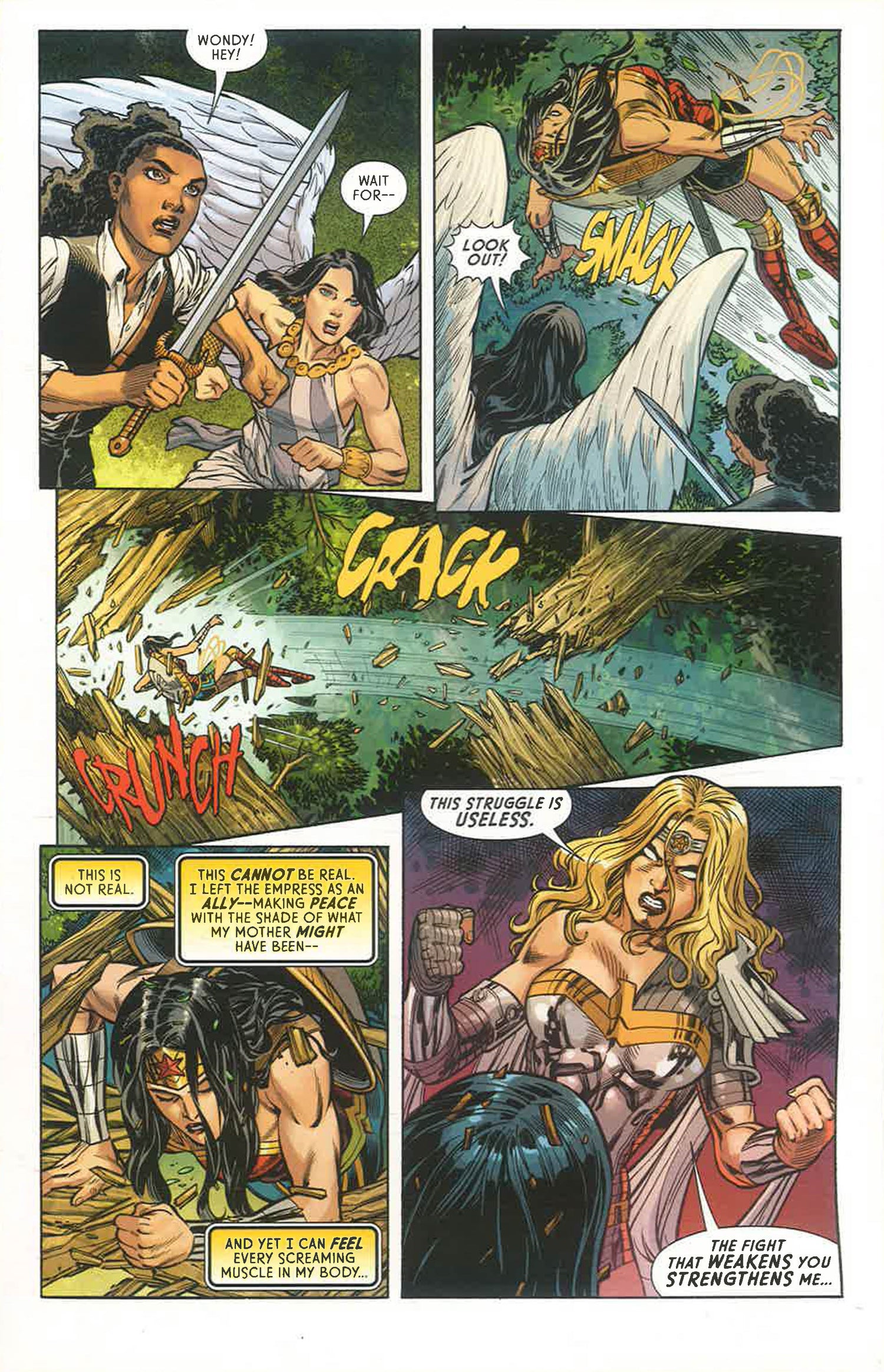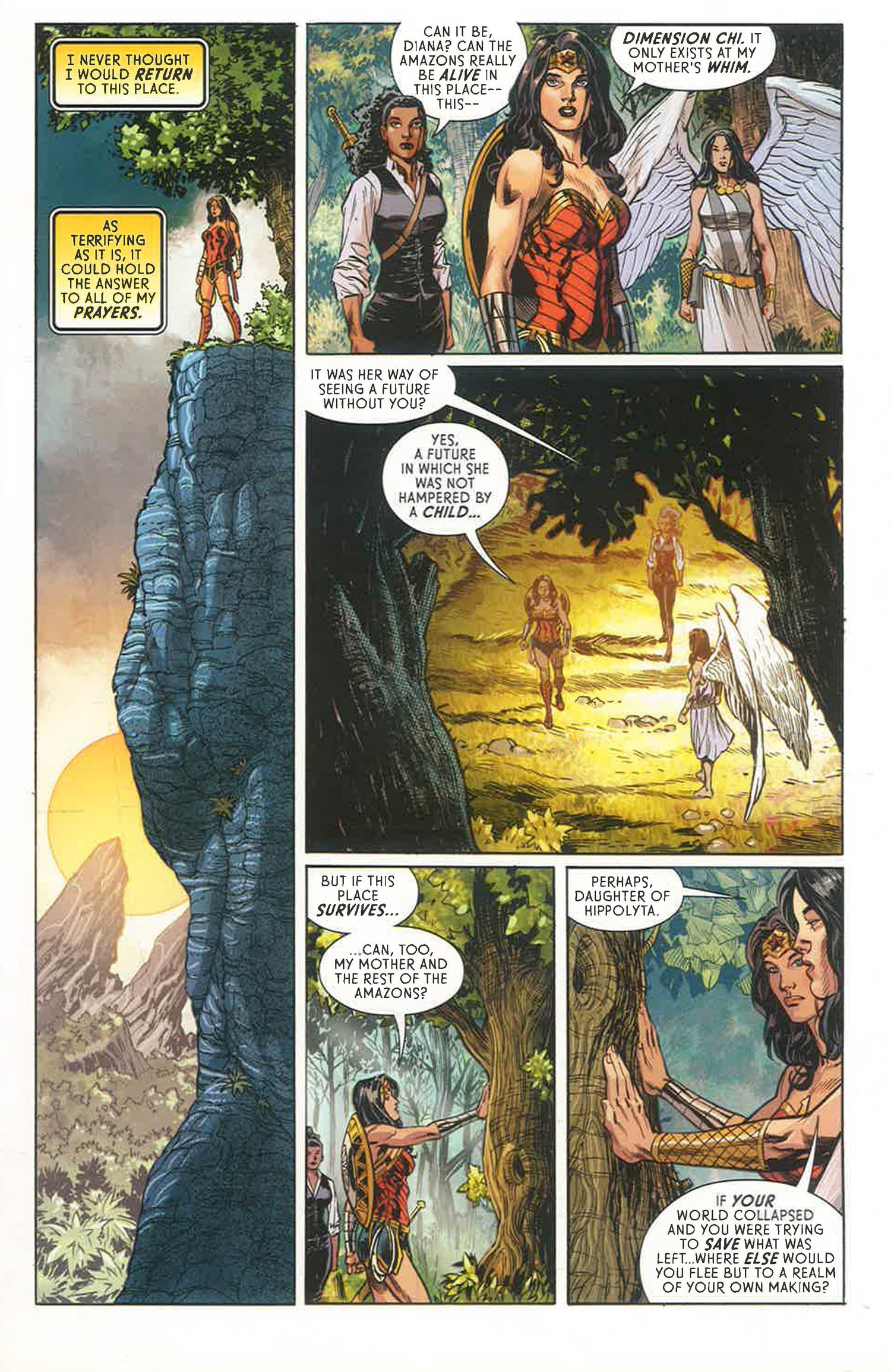 Wonder Woman's journey through the broken realm has reached its end--but who waits for her there? And what exactly created this place between dimensions in the first place? The answer will shock Diana and provide the missing piece of a puzzle that's defined her entire life! But in the wake of Ares' escape from his prison, who among the Amazons could possibly change the course of history? Only one: Diana's long-lost aunt, Antiope! Plus, Lex Luthor visits fellow Legion of Doom member Cheetah and gives everything she needs to slake her thirst with Diana's blood...once and for all! But for Diana, even though her fabled bracelets are shattered, her will broken, is Wonder Woman...defeated? Must a world without love be one without our hero? Wonder Woman is forced to discover a new way to fight.
