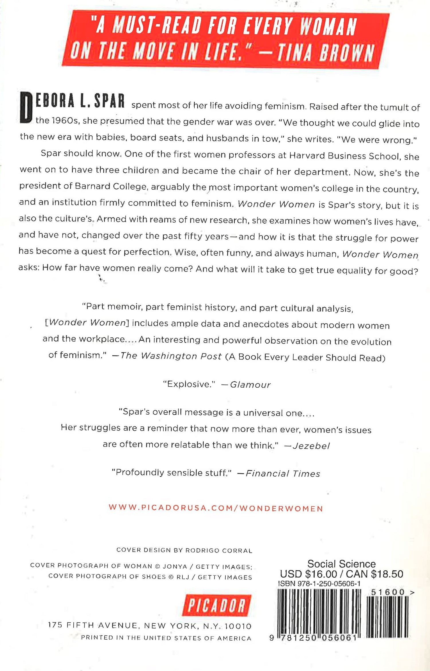 Debora L. Spar spent most of her life avoiding feminism. Raised after the tumult of the 1960s, she presumed that the gender war was over. "We thought we could glide into the new era with babies, board seats, and husbands in tow," she writes. "We were wrong."Spar should know. One of the first women professors at Harvard Business School, she went on to have three children and became the chair of her department. Now, she?s the president of Barnard College, arguably the most important women?s college in the country, and an institution firmly committed to feminism. Wonder Women is Spar?s story, but it is also the culture?s. Armed with reams of new research, she examines how women?s lives have, and have not, changed over the past fifty years - and how it is that the struggle for power has become a quest for perfection. Wise, often funny, and always human, Wonder Women asks: How far have women really come? And what will it take to get true equality for good?