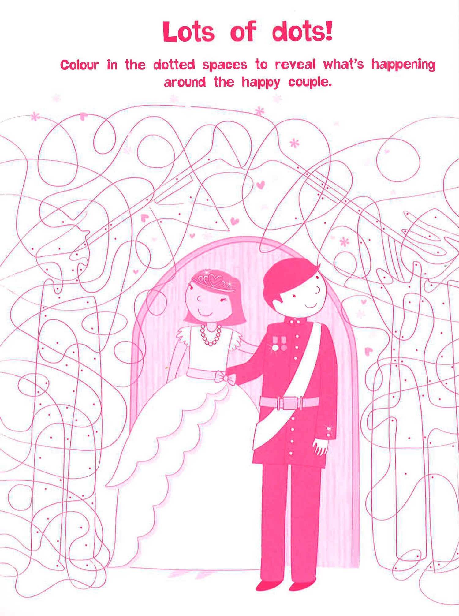 Little girls everywhere can celebrate all things wonderful and wedding with this beautifully illustrated activity book packed with doodles to do and puzzles to solve. Inside, readers can design a dress fit for a queen, decorate a wedding cake, spot the identical bridesmaids, help the bride and groom through the maze to their guests, fill the bride's bouquet with flowers, try to find all of the items on the wedding list and much, much more.