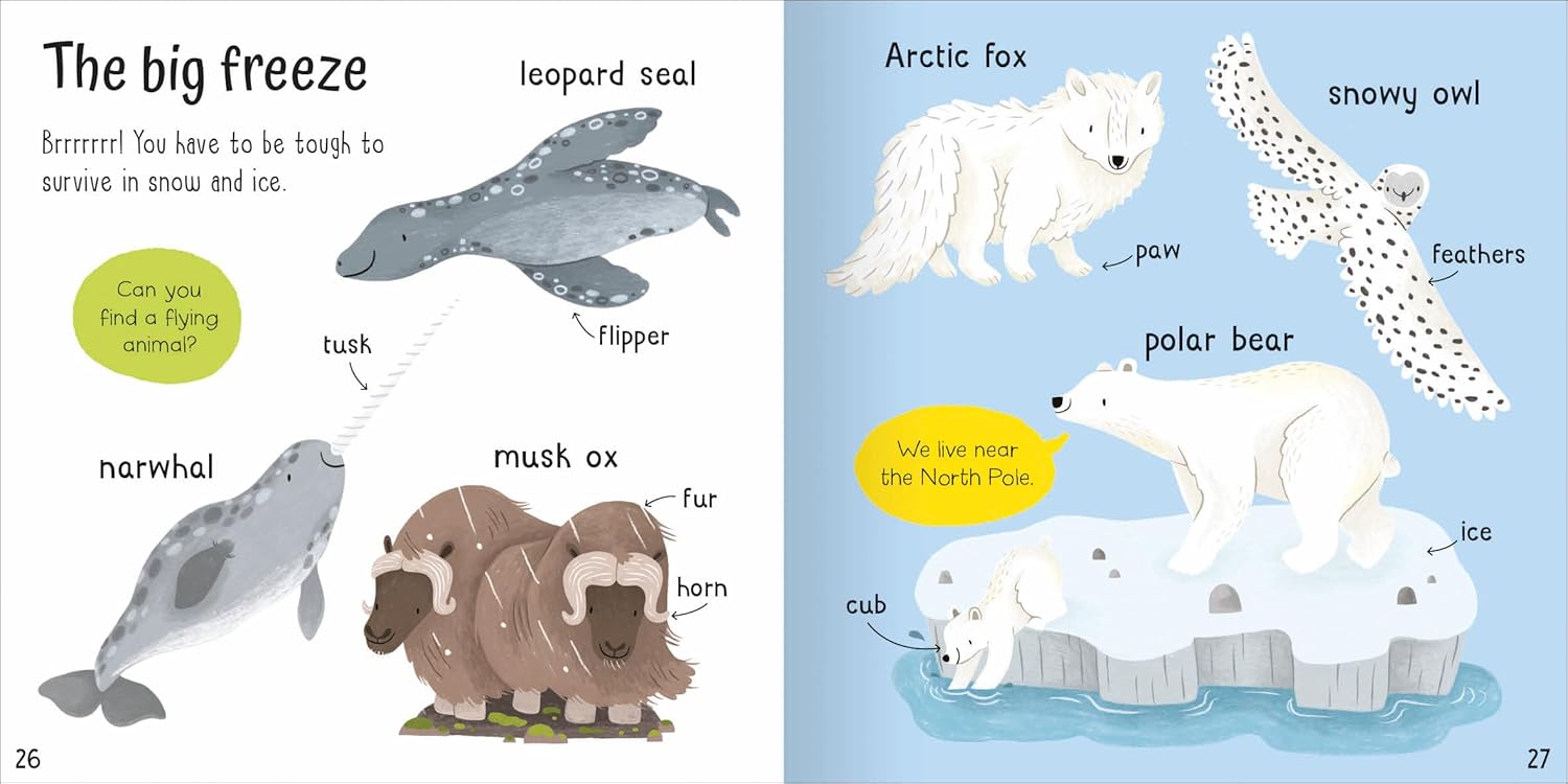 Packed with bright, engaging illustrations and words to say, little ones will love practising the names of their favourite animals and learning some new ones, too. With lots to spot and talk about on every page, children can also have fun with simple questions that explore numbers, colours and shapes.
