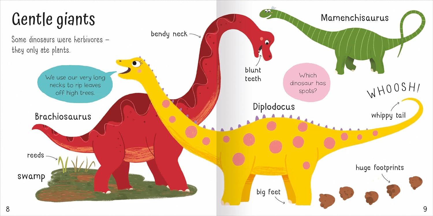 Wonderful Words: Dinosaurs! Packed with vibrant, engaging illustrations and words to say, little dino fans will love practising the names of their favourite dinosaurs and learning about lots of new ones too. With lots to spot and talk about on every page, children can have fun with the simple questions throughout that explore numbers, colours and shapes.