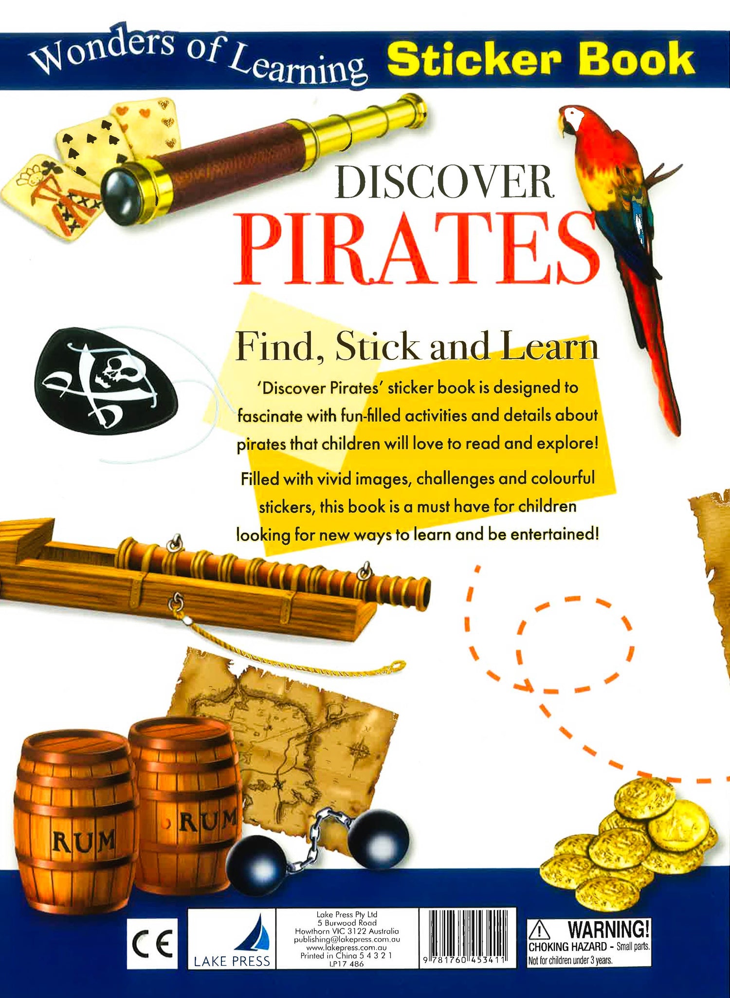 'Discover Pirates' sticker book is designed to fascinate with fun-filled activities and details about pirates that children will love to read and explore! Filled with vivid images, challenges and colourful stickers, this book is a must have for children looking for new ways to learn and be entertained!