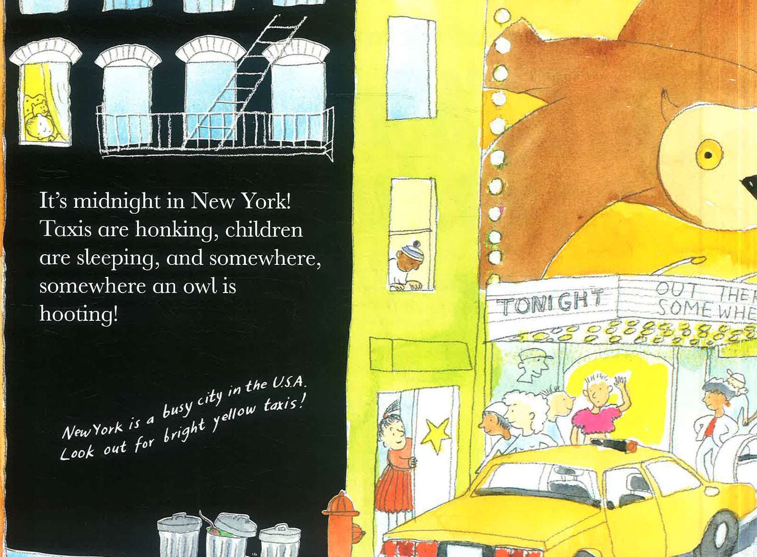 When you fall asleep in the middle of the night, it's daytime on the other side of the world and someone else is wide awake. Out There Somewhere whisks you around the world so you can discover that while it's midnight in New York, it's rush hour in Moscow, lunchtime in China and breakfast in Cape Town...