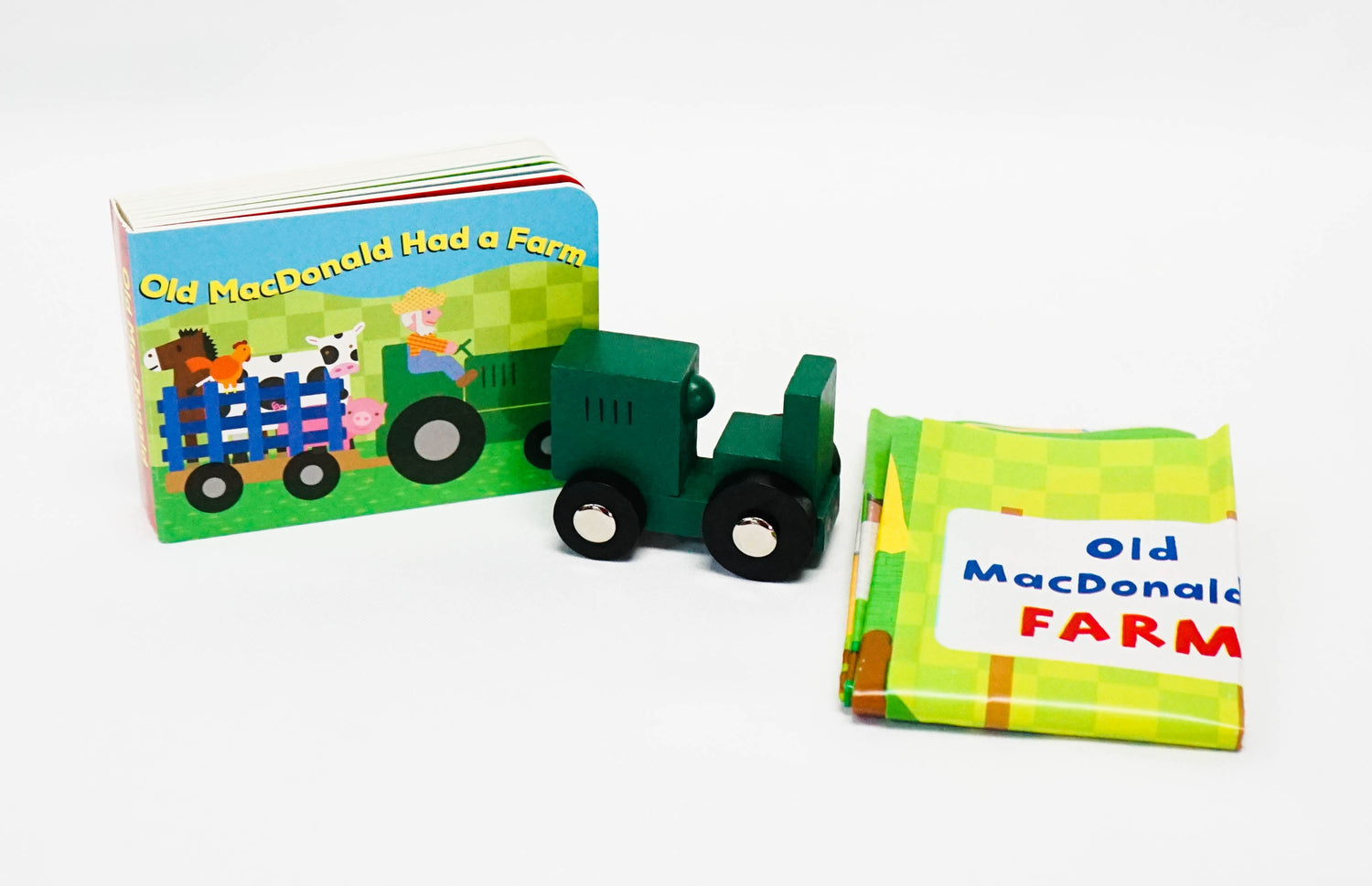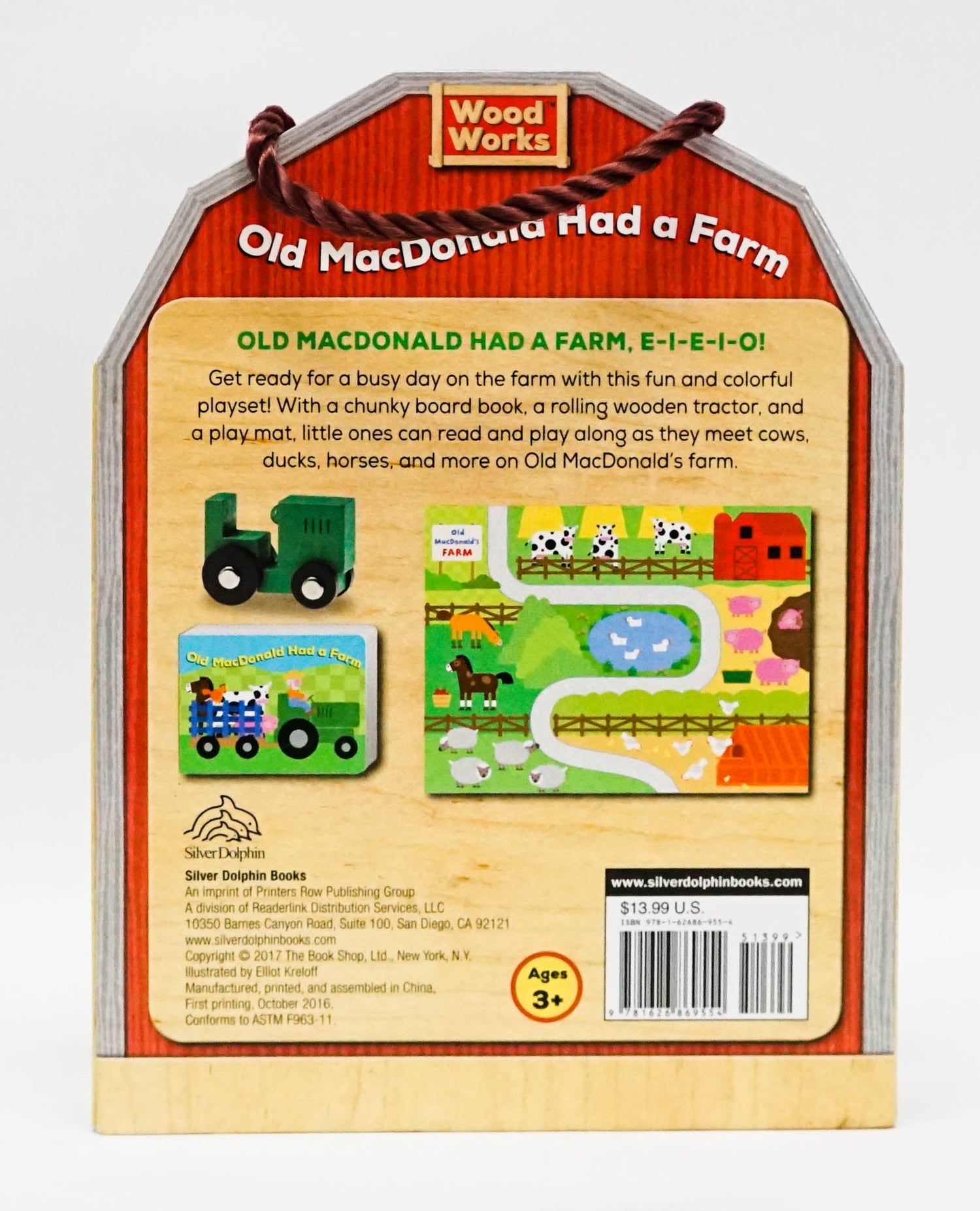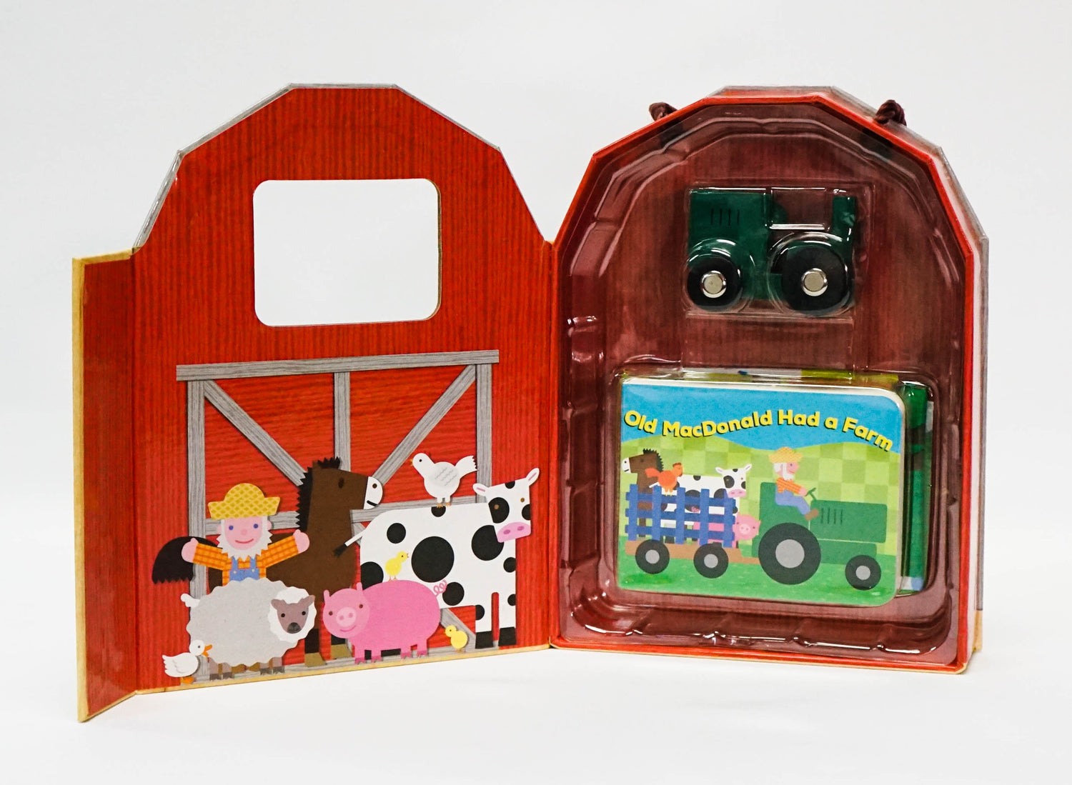 Old MacDonald had a farm, E-I-E-I-O! This brand-new playset featuring the classic children's singalong song Old MacDonald Had a Farm will be the perfect addition to your child's library. With a chunky board book, a wooden tractor, and a playmat, little ones can read and play along as they go through the farm and meet cows, ducks, horses, and more! Join Old MacDonald and his farmyard friends for a reading adventure.