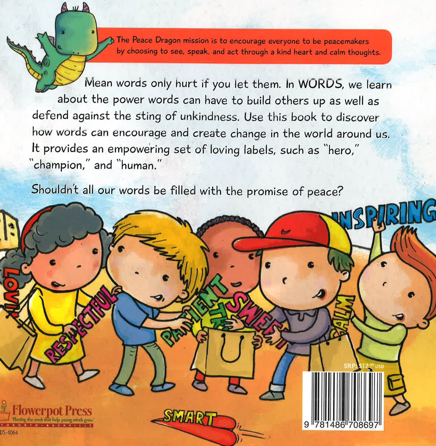 The Peace Dragon Tales series promotes peace and love among young readers and encourages them to apply those concepts every day to everything they do. In Words, Pax the Peace Dragon teaches children the power of words and the importance of kindness to self and others. Beautiful illustrations will captivate readers and the included activities will help young learners apply the concepts from the book in the classroom or at home. The Peace Dragon is a non-profit dedicated to teaching and spreading peace throughout the world. Each book in the Peace Dragon Tales series from Flowerpot Press is an extension of this mission and will help teach children the power of words, the importance of acceptance, and the enormous benefit of seeing and accepting the world with an open heart.The series is perfect for campaigns that aim to reduce racism, bullying, and prejudice, and turn children toward unity, kindness, and acceptance.