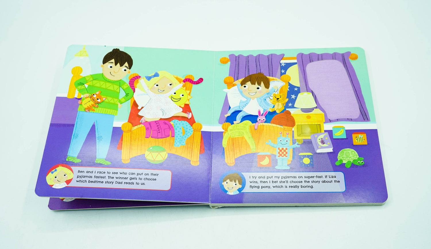 My Bedtime follows two characters through the stages of the bedtime routine, with touch and feel panels for every stage.