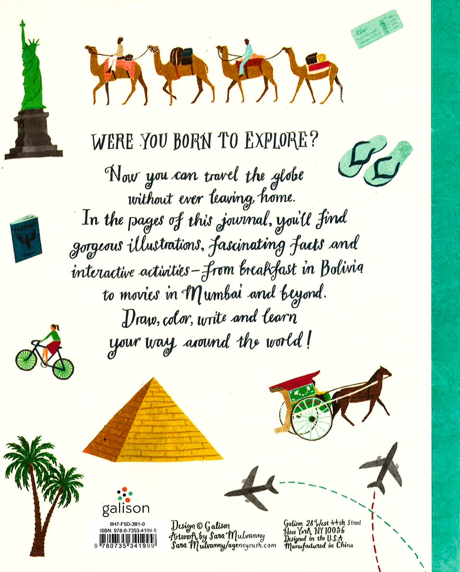 A worldwide adventure is in store with Galison's World Explorer Guided Activity Journal! Take an interactive and creative journey around the globe with 112 pages of educational facts and fun activity prompts-from designing clothes based on international trends to learning what Bolivians eat for breakfast. The perfect gift for the creative jetsetter of any age.