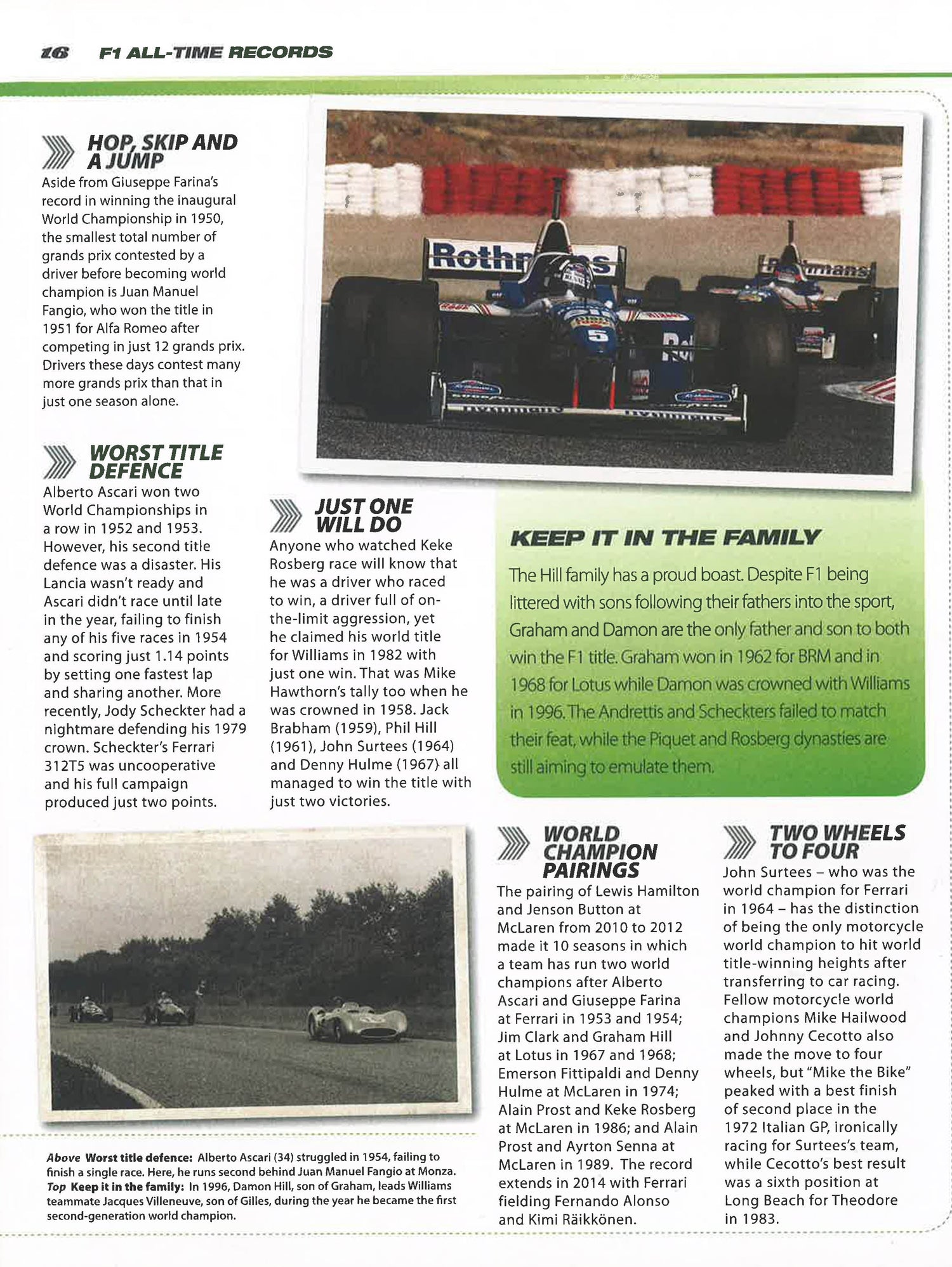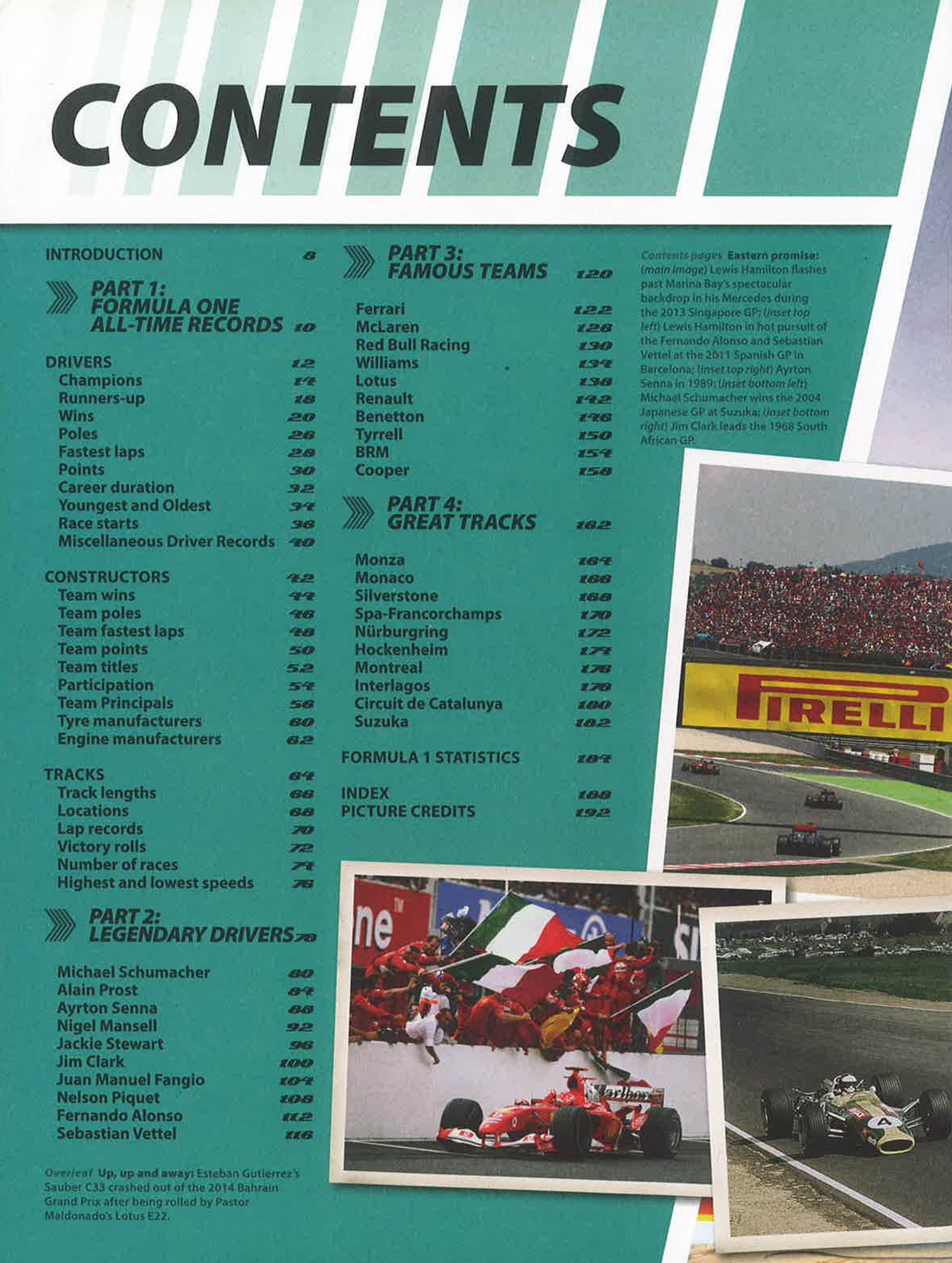 It's go, go go! For the fabulous fourth edition of World Formula 1 Records 2015 - a massive, fully illustrated compendium of facts and stats about the world's premier form of motor sport.It features the all time F1 record breakers and extended coverage of the sport's greatest drivers, most successful teams and most famous racetracks.
