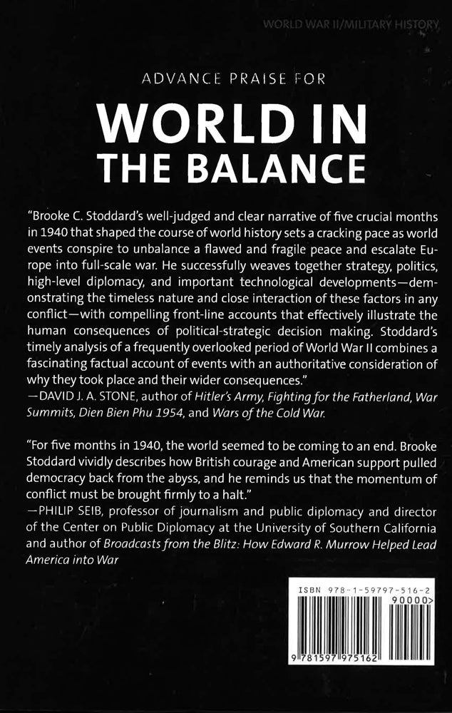 In mid-1940, the British Expeditionary Force desperately attempted to flee the small French port of Dunkirk and reach British shores. France was falling, and the men were well aware that the German army had already conquered Poland, Denmark, Norway, Holland, and Belgium. Only Britain remained. In mid-1940, the British Expeditionary Force desperately attempted to flee the small French port of Dunkirk and reach British shores. France was falling, and the men were well aware that the German army had already conquered Poland, Denmark, Norway, Holland, and Belgium. Only Britain remained. Churchill then proclaimed to the House of Commons, "Hitler will have to break us in this island or lose the war." There were, perhaps, no more telling words spoken in World War II. For the following five months, Great Britain waged a heroic, and clandestine, struggle with Nazi Germany-one both psychological and diplomatic-over the fate of the world. World in the Balance recounts these pivotal months. Rallying after Churchill's speeches, destroying the French fleet so it would not fall to the Germans, fending off Nazi agents from former King Edward VIII, weakening England's defenses to build up those of Egypt, establishing a dedication to secret radar, and engaging in deft diplomacy-notably saving Gibraltar by keeping Spain neutral and successfully courting favor in the United States-set all the pieces in place for eventual victory over Axis fascism.