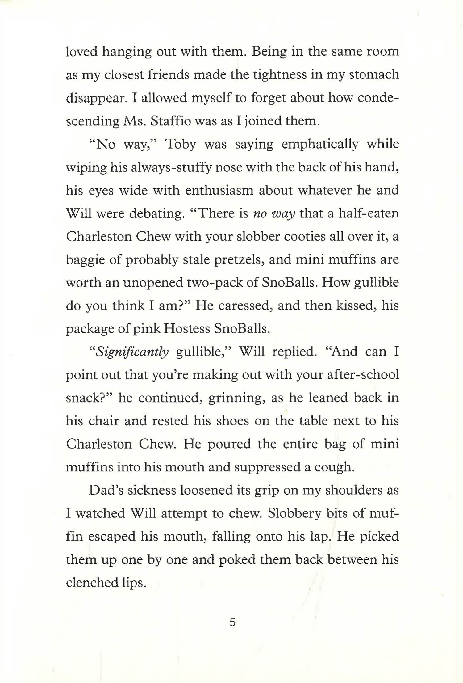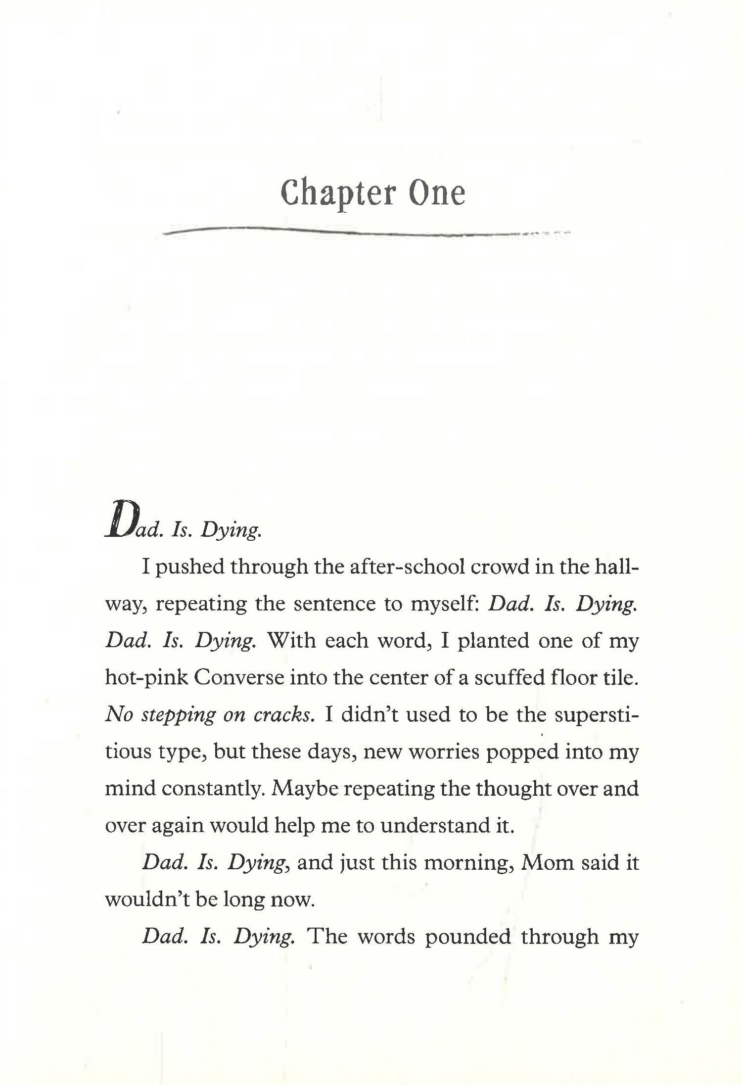 Iris tries to act normal at school, going through the motions and joking around with her friends. But nothing is normal, and sometimes it feels like she'll never laugh again. How can she, when her dad is dying of a virus that's off-limits to talk about? When she knows that soon all she'll have left of her kind, loving dad are memories, photos, and a binder full of the poems they used to exchange?