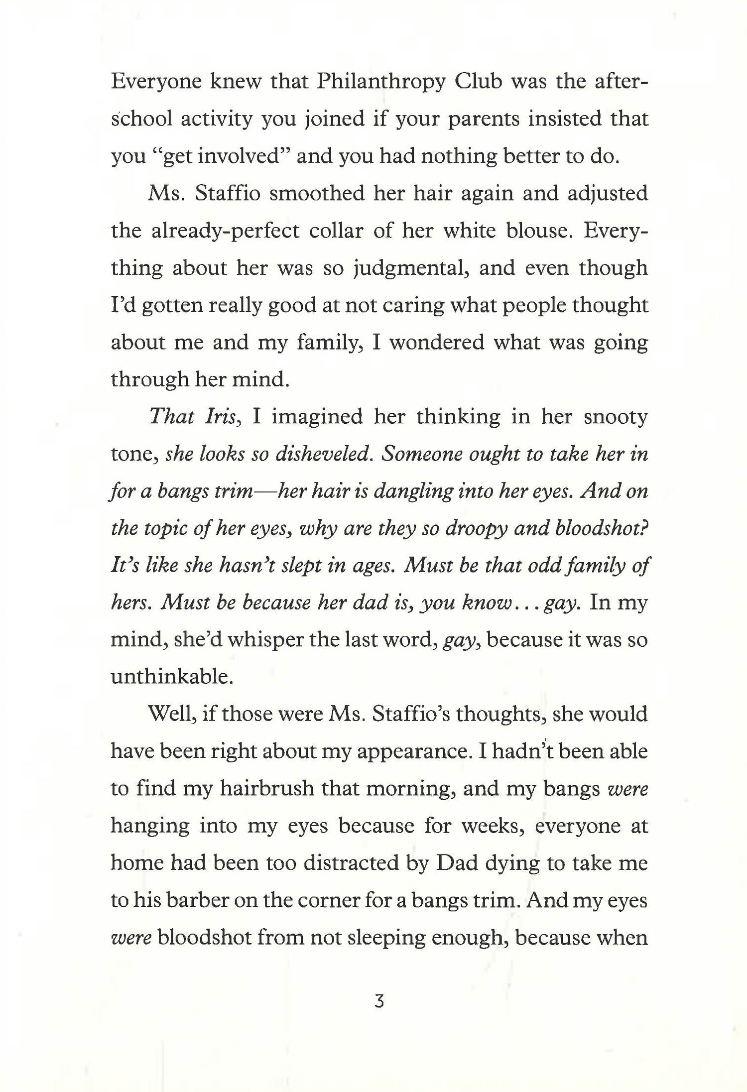 In a sea of rage and grief, Iris resolves to speak out against the rampant fear, misinformation, and prejudice surrounding AIDS-and find the pieces of Dad that she never knew before. Along the way, Iris might just find new sides to herself.