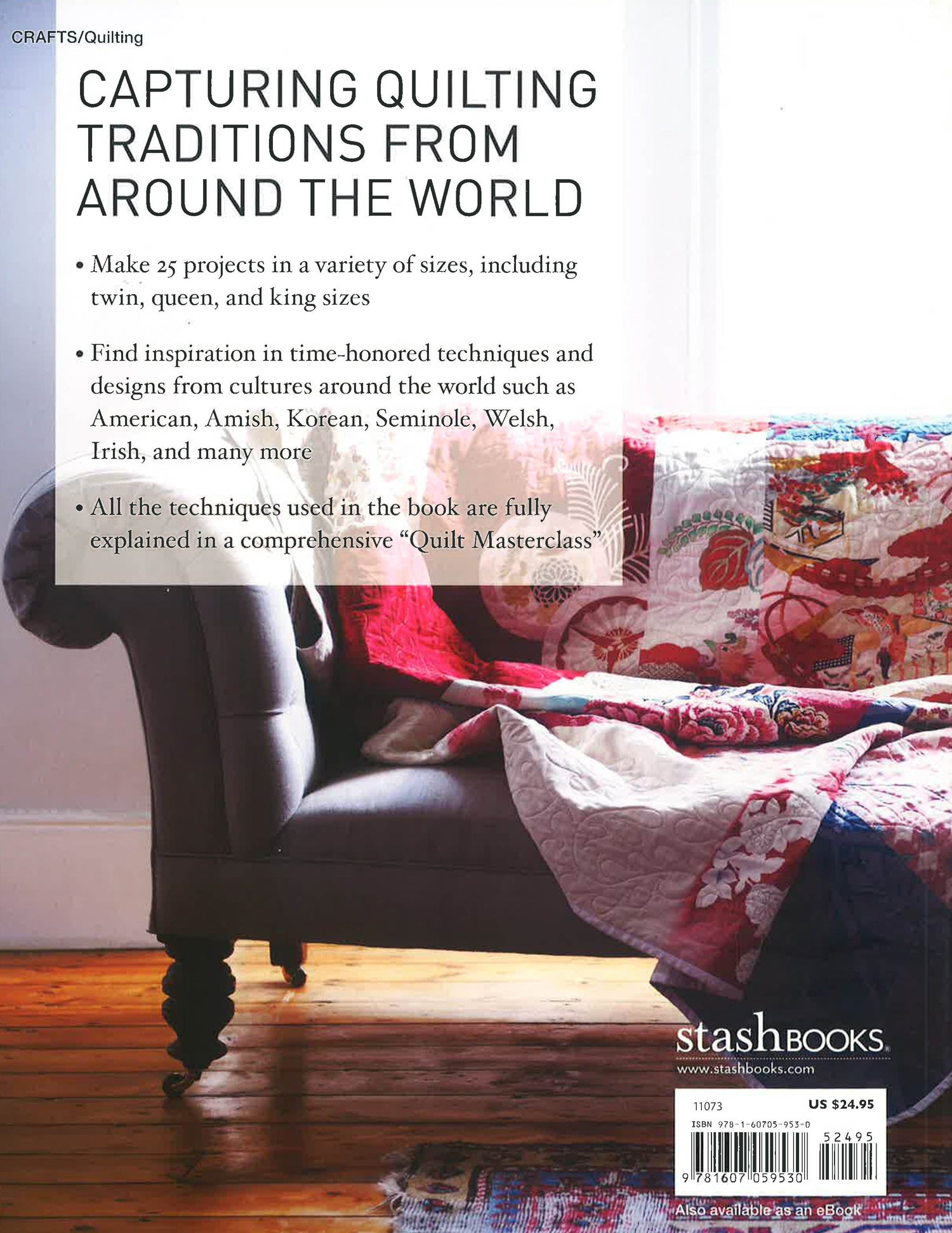 Travel the globe with these 25quilt projects no passport required! In World of Quilts 25Modern Projects, Cassandra Ellis presents quilt projects that are historically rooted in cultures around the world. Using time-honored techniques, she strips quilting back to the basics to inspire you both aesthetically and practically. The quilts vary in size, difficulty, and fabrics, so you can mix and match elements to create a design that s at once unique and personal. The second part of the book is a Quilt Masterclass reference to guide you through the quilting process from start to finish.