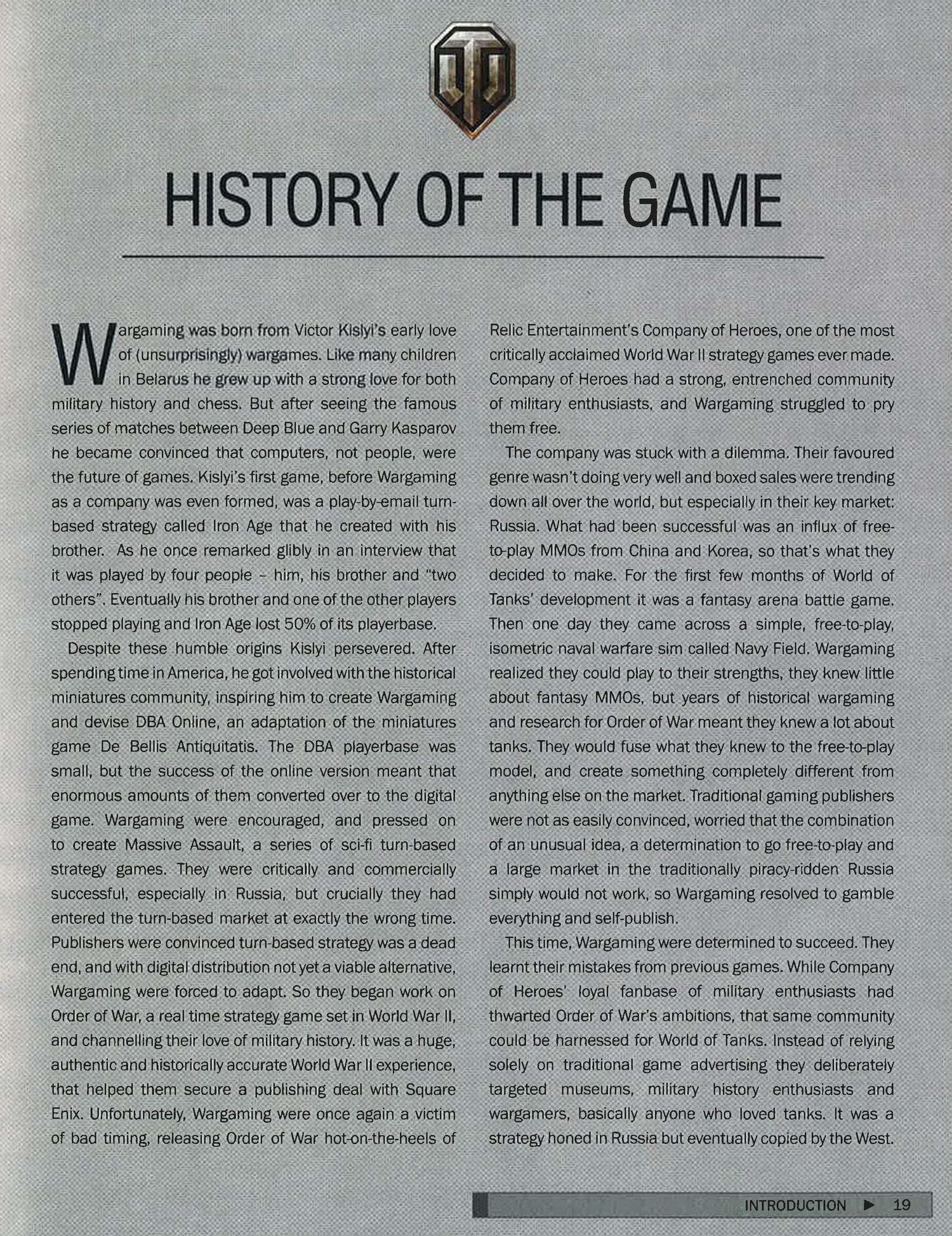 World of Tanks is the hugely popular online video game dedicated to tank battles. In terms of playability, historical accuracy and enjoyment it is second to none. WoT holds a Guinness world record for the highest number of players on one server at the same time, and it has a huge fan base across Europe to the Far East and Australasia. World of Tanks Commanders Guide offers expert playing (and winning) advice from the makers of the game, and will be a beautiful souvenir for all fans, as well as a practical guide.