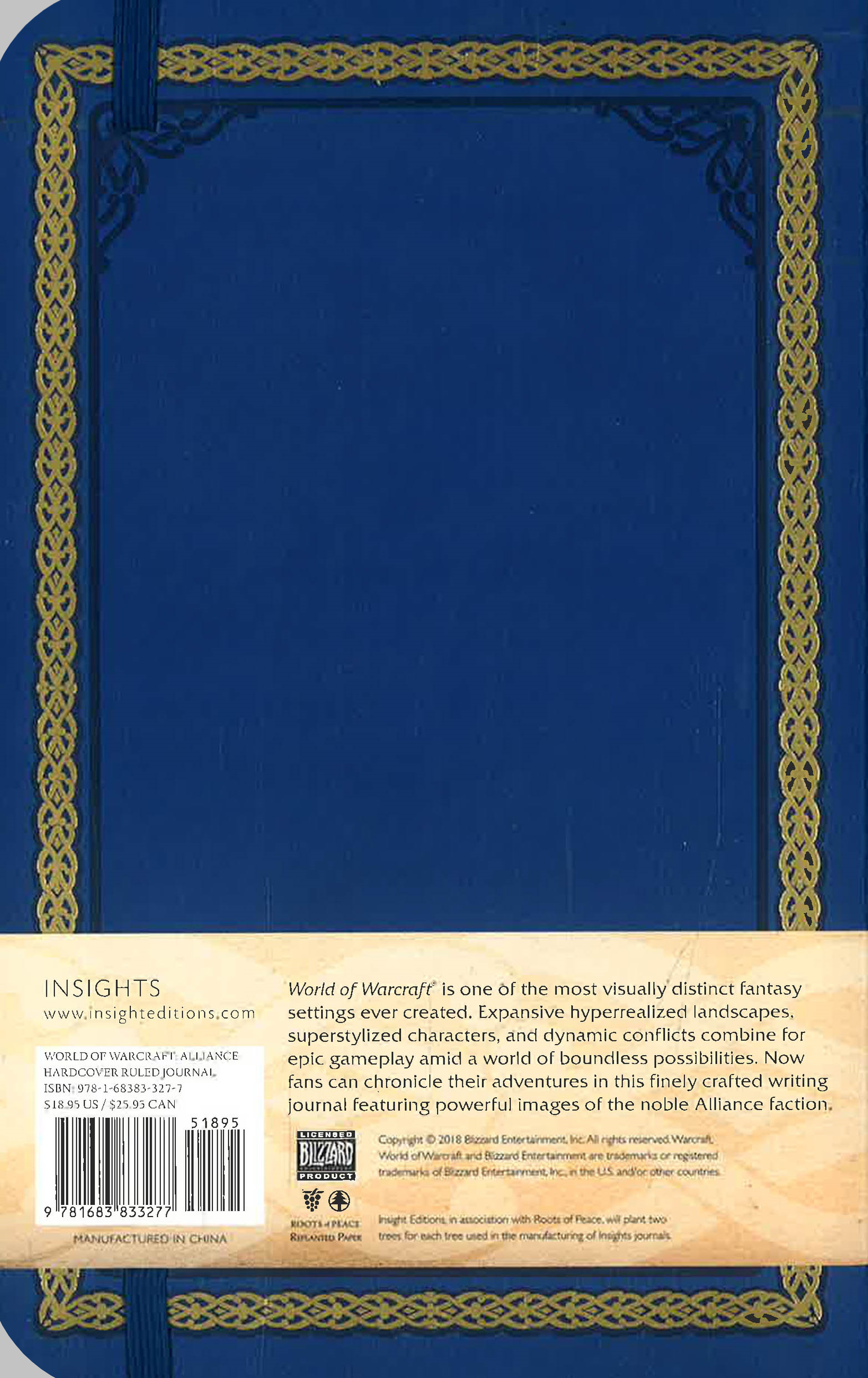 World of Warcraft(R) is one of the most visually distinct fantasy settings ever created. Expansive hyper-realized landscapes, super-stylized characters, sweeping storylines, and dynamic conflicts combine for epic gameplay amid a world of boundless possibilities. Now fans can chronicle their adventures in this finely crafted writing journal featuring powerful images of the noble Alliance faction. This journal is a must-have for players seeking to bring light to the darkest corners of Azeroth.