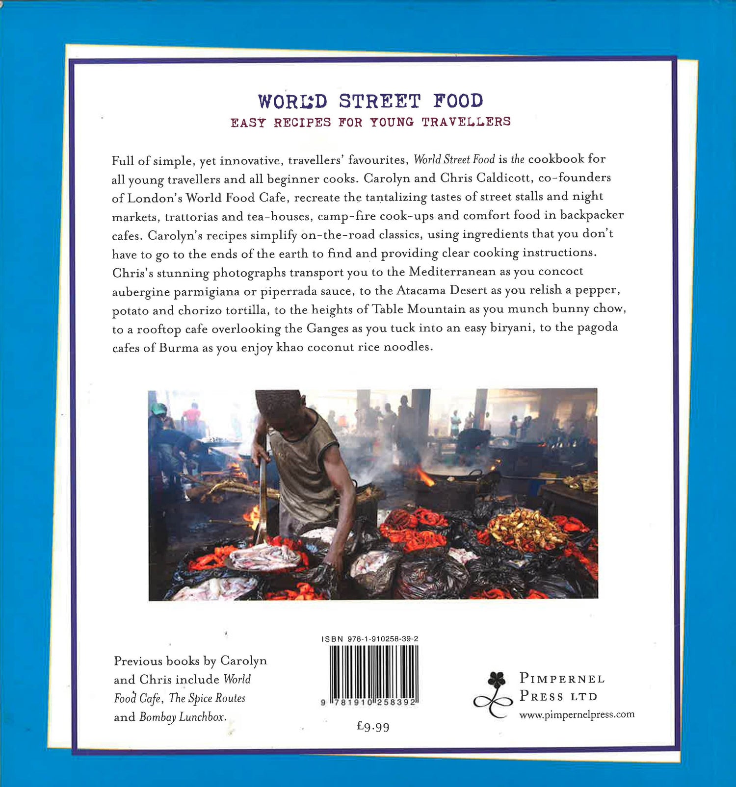 Full of simple, yet innovative, travellers' favourites, World Street Food is the cookbook for all young travellers and all beginner cooks. Carolyn and Chris Caldicott, co-founders of London's World Food Cafe, recreate the tantalizing tastes of street stalls and night markets, trattorias and tea-houses, camp-fire cook-ups and comfort food in back-packer cafes. Carolyn's recipes simplify on-the-road classics, using ingredients that you don't have to go to the ends of the earth to find and providing clear cooking instructions. Chris's stunning photographs transport you back to the Mediterranean as you concoct aubergine parmigiana or piperrada sauce, to the Atacama Desert as you relish a pepper, potato and chorizo tortilla, to the heights of Table Mountain as you munch bunny chow, to a rooftop cafe overlooking the Ganges as you tuck into an easy biryani, to the pagoda cafes of Burma as you enjoy khao coconut rice noodles.