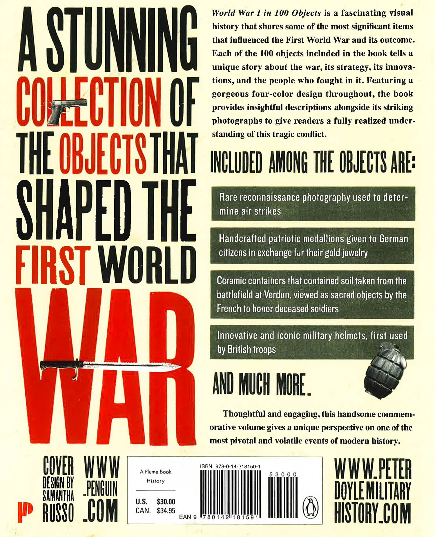 A dynamic social history commemorating the 100th anniversary of the start of World War I General readers and history buffs alike have made bestsellers of books like A History of the World in 100 Objects. In that tradition, this handsome commemorative volume gives a unique perspective on one of the most pivotal and volatile events of modern history. In World War I in 100 Objects, military historian Peter Doyle shares a fascinating collection of items, from patriotic badges worn by British citizens to field equipment developed by the United States. Beautifully photographed, each item is accompanied by the unique story it tells about the war, its strategy, its innovations, and the people who fought it.