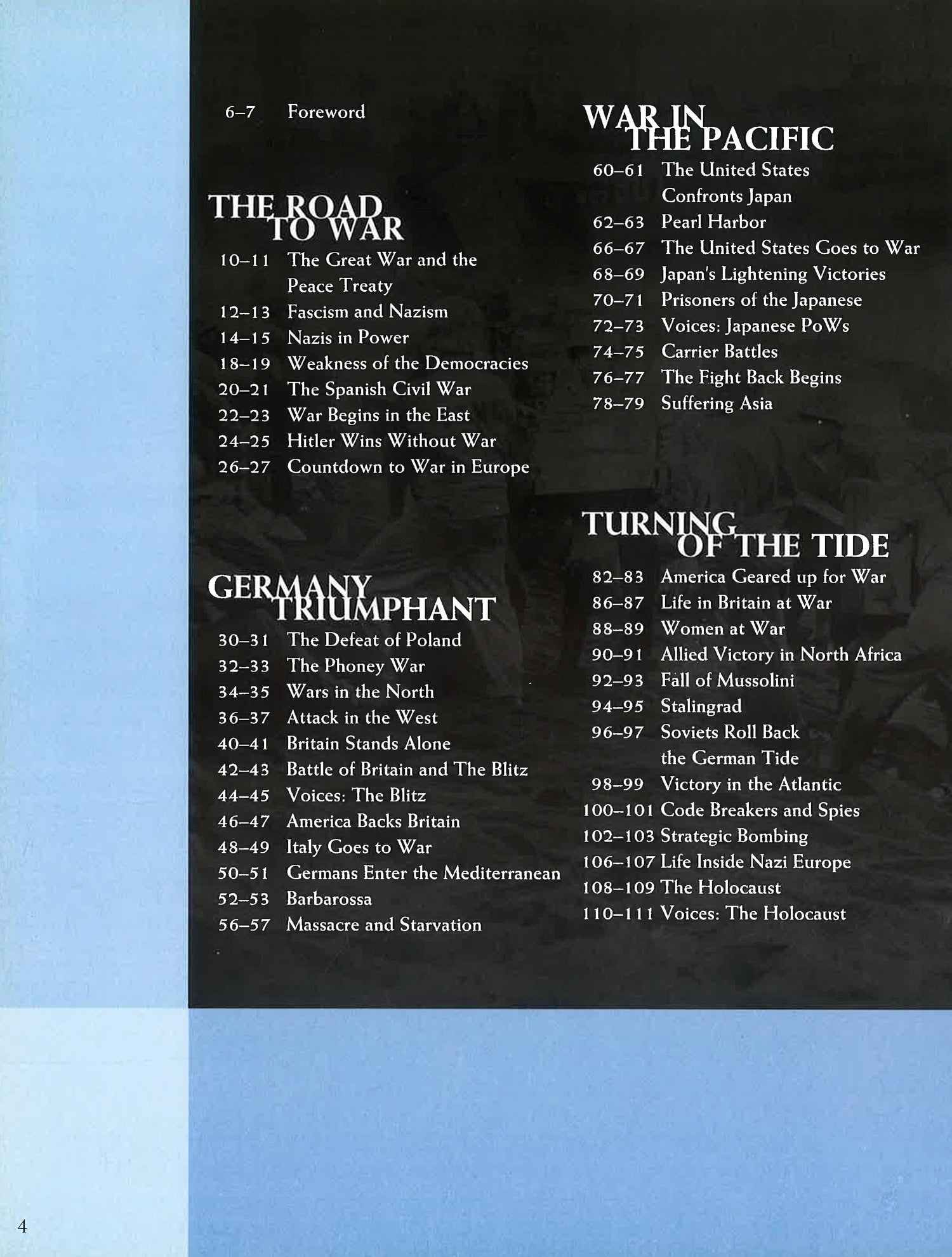 Now in Paperback! Beginning with the complex political and social circumstances that led to World War II, this volume comprehensively discusses the decisions made, battles fought, lives affected, and subsequent results of the war that defined the twentieth century. It includes firsthand testimony of young soldiers who remember the front lines, as well as the wives, parents, and children left at home.
