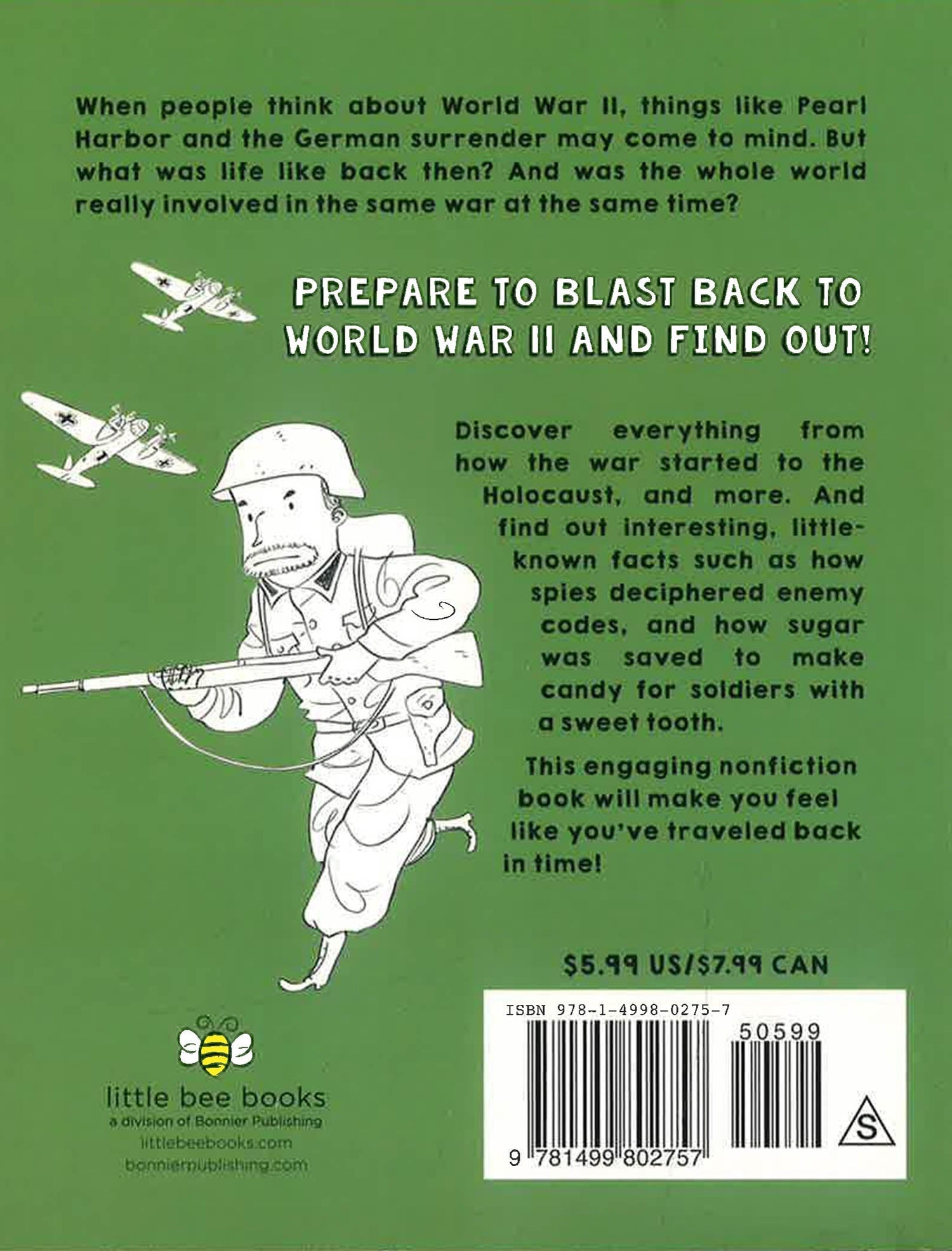 Discover what life was like throughout the world during World War II. This engaging nonfiction book, complete with black and white interior illustrations, will make readers feel like they've traveled back in time. It covers everything from how the war started to the Holocaust to the German surrender, and more. Find out interesting, little-known facts such as how spies deciphered enemy codes and how some small resistance groups won against the Axis Powers. The unique details, along with the clever illustrations, make this series stand out from the competition.