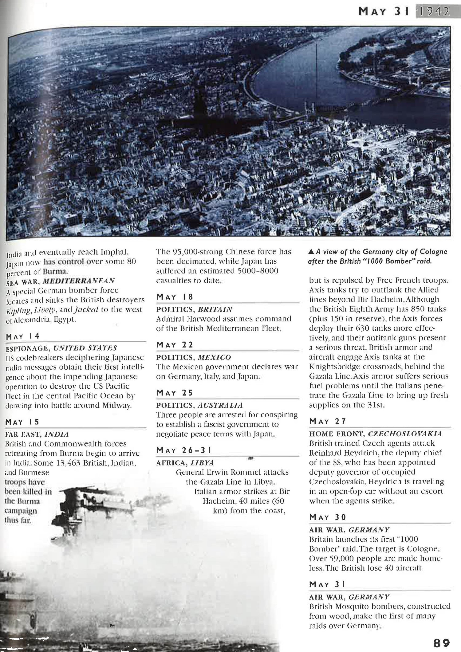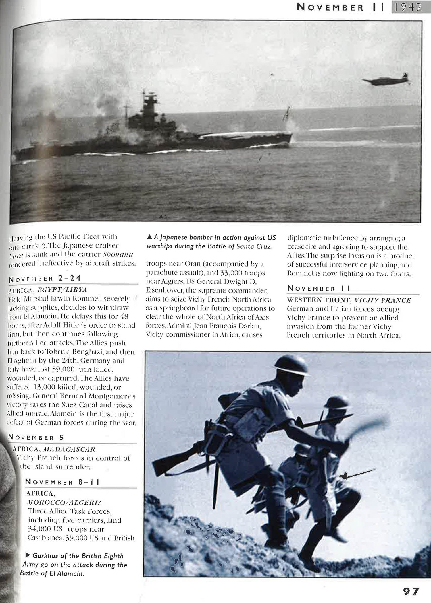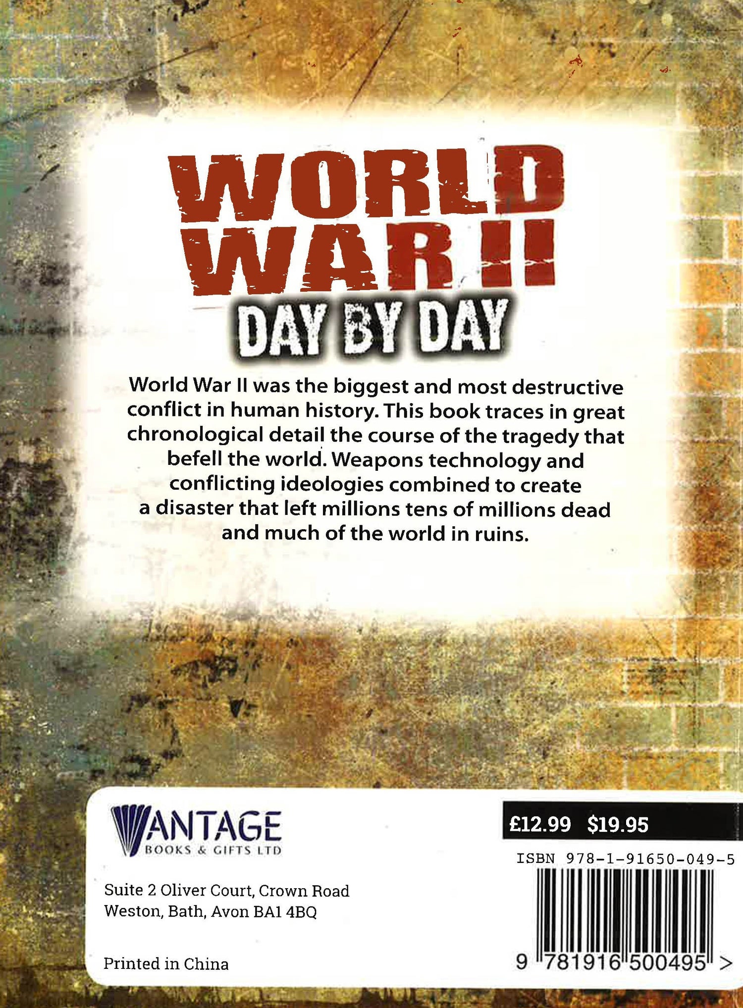 World War II Day by Day is a chronological history of the second Great War, from September 1939 to the surrender of Japan on September 2, 1945.World War II Day by Day is a chronological history of the second World War from the beginning of the Nazi's campaign in Poland in September 1939 to the surrender of Japan in Tokyo Bay on September 2, 1945. All major war theaters are covered, as is the fighting in the air and the sea. The dated entries, written as though they have just happened, recapture the immediacy of the war as they analyze the major battles and campaigns, including Stalingrad, Kursk, Midway, D-Day, Iwo Jima, Okinawa and Berlin.Longer features on various aspects of the conflict accompany each entry. You will see the war's decisive weapons, strategic decisions, and policies. There are also biographical entries on the individuals who shaped and prosecuted the war in both Europe and the Pacific theaters: leaders such as Chamberlain, Stalin, Zhukov, MacArthur, Hitler, Manstein, and Eisenhower. The hardcover reference titles in the Day by Day series examine the evolution of wars in a chronological timeline, from the first skirmishes to the final battles. The fate of soldiers, battalions, armies, can change in the blink of an eye--with these comprehensive books, you can follow the conflicting sides in their strategy, weaponry, and policies.