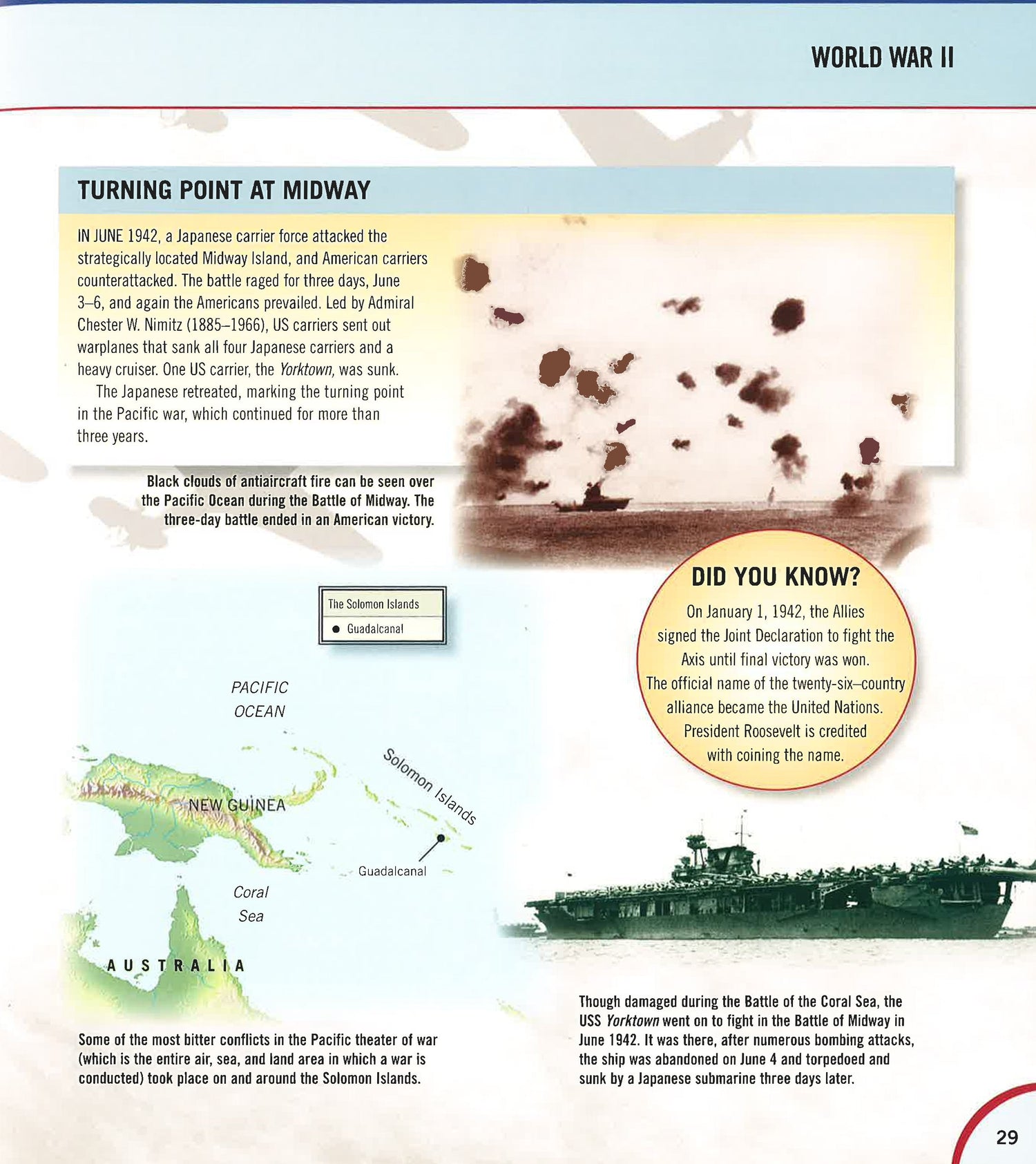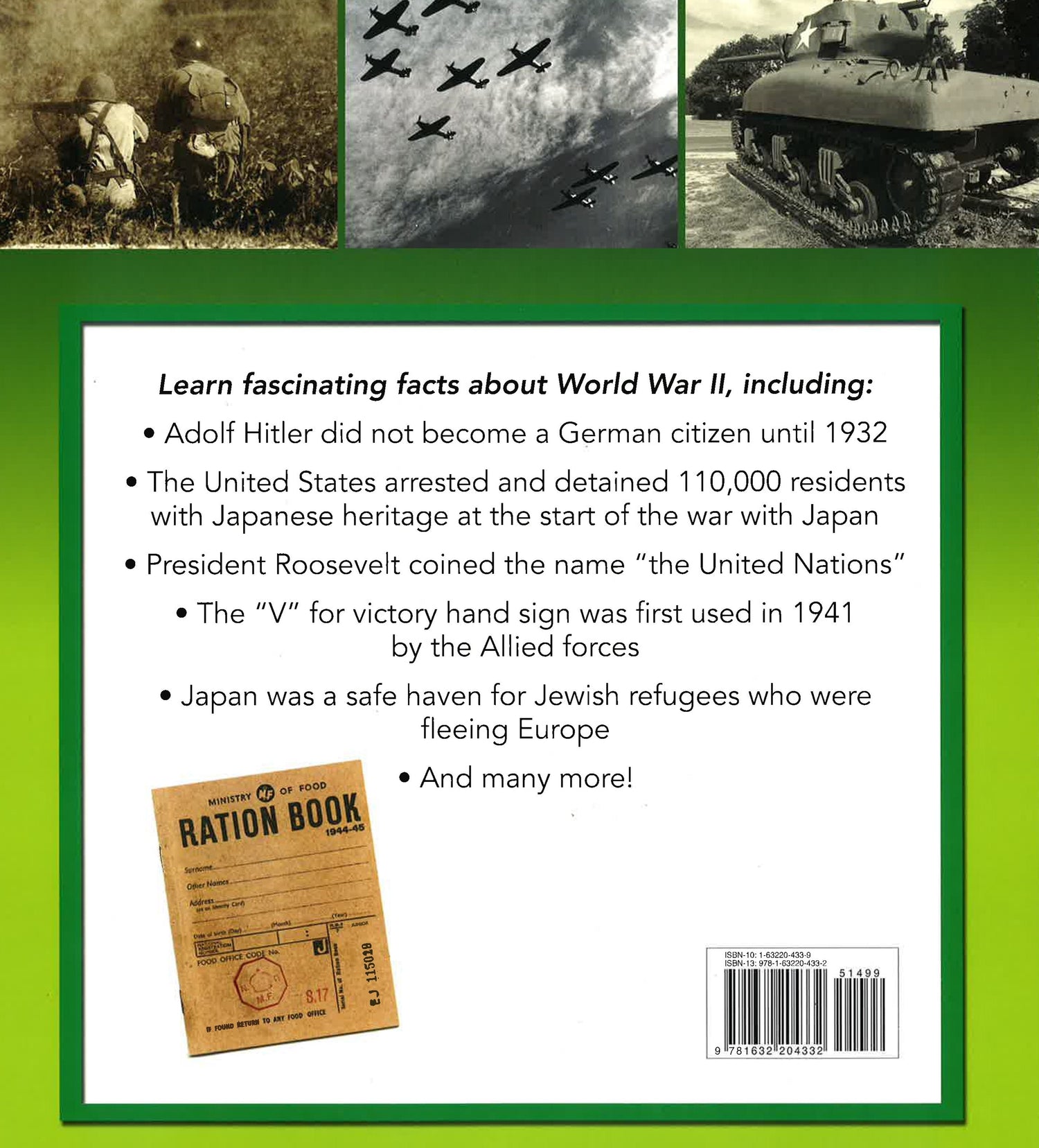 The Fact Atlas series offers an age-appropriate overview of the historic and world-changing events of World War II, covering everything from the rise of Hitler and Nazism to the tragedy of the Holocaust and its long-lasting effects. Readers will be introduced to key players political and military leaders like Winston Churchill and Franklin Roosevelt as well as Joseph Stalin, Benito Mussolini, and many more. Explore the ideas of democracy versus totalitarianism and international relations as a whole during the 1930s. Learn more about the different countries that became involved in the Second World War, with a focus on most of Europe, the United States, and Japan. Lesser-known facts about the involvement of countries such as China, Libya, Ethiopia, and New Zealand make it very clear that the war touched all corners of our world. Accompanied by photos and maps to outline specific events, this book offers a careful breakdown of how the war played out globally. Battles and campaigns are explained and examined, and young readers will be able to follow the war from beginning to end, analyzing causes and effects of each important event. World War II gives young readers the opportunity to grasp the weight and magnitude of one of the very worst wars the world has seen.
