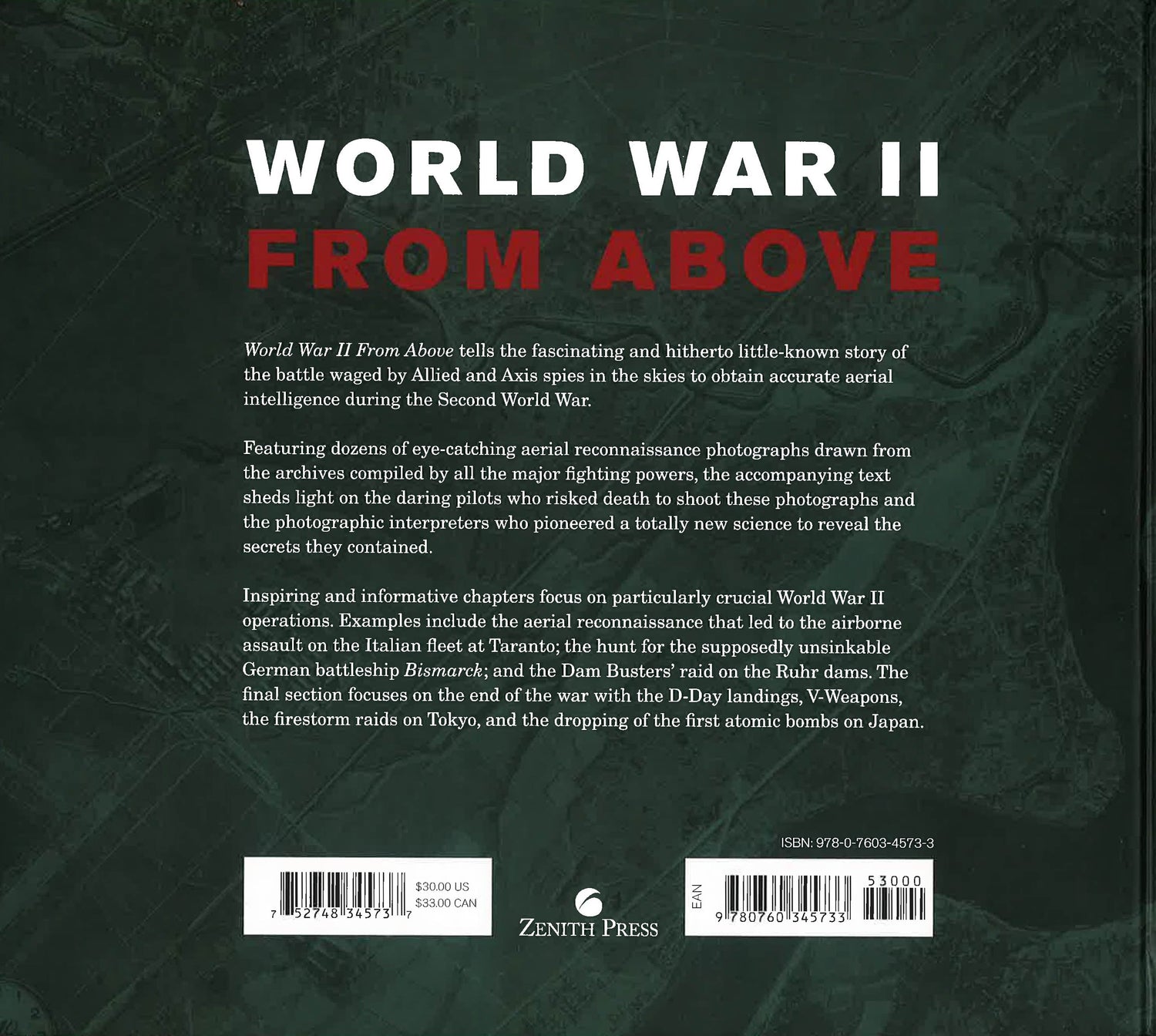 In World War II From Above, historian Jeremy Harwood profiles the fascinating story, unknown to many, of the battle waged by Allies and Axis spies in the skies to obtain accurate aerial intelligence during World War II. This book features dozens of eye-catching aerial reconnaissance photographs drawn from the archives compiled by all the major fighting powers. Hardwood's accompanying text profiles the daring pilots who risked death to shoot these photographs and the photographic interpreters who pioneered a totally new science to reveal the secrets they contained. Inspiring, informative, and entertaining special features focus on particularly crucial operations from both the Allies and Axis perspectives - from the American Doolittle Raid against Japan to the numerous battles against Germany's cutting-edge U-boats to the Battle of Monte Cassino and a score of other epic campaigns. Told through photographs that have largely never before appeared in print, outside of their reconnaissance origins, World War II From Above combines history with photography, placing the reader in the midst of the action like few books ever have.
