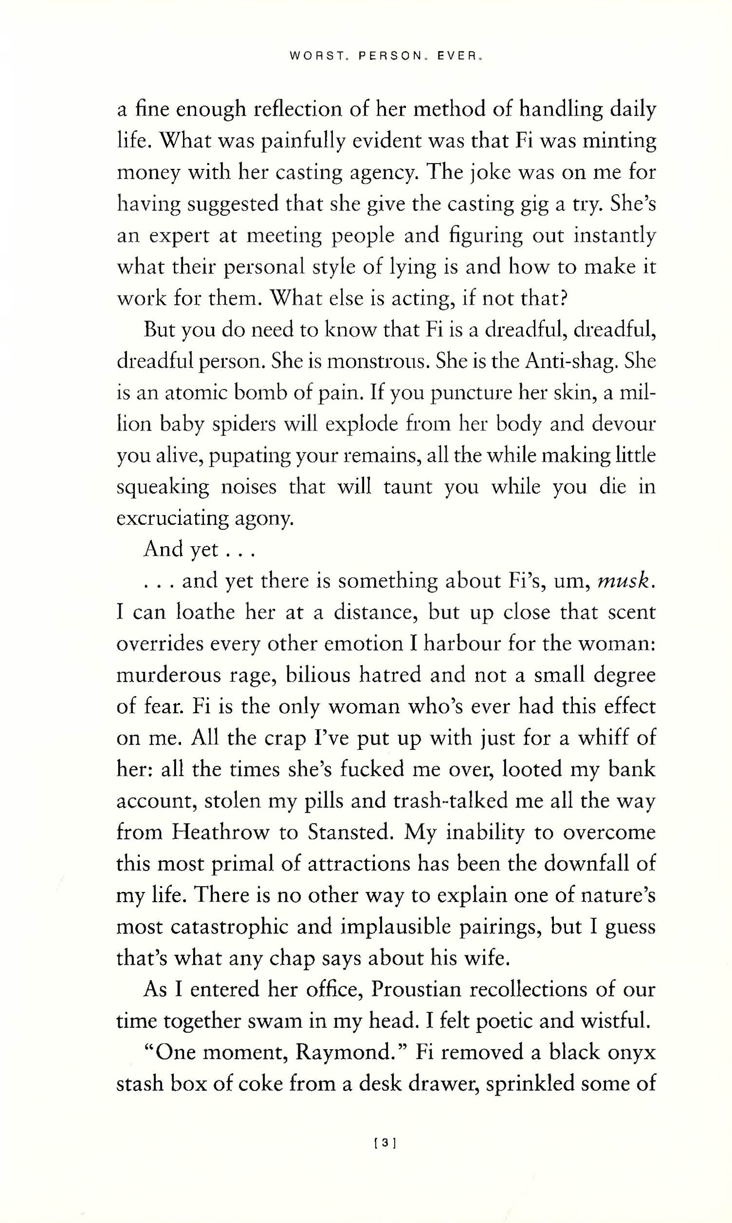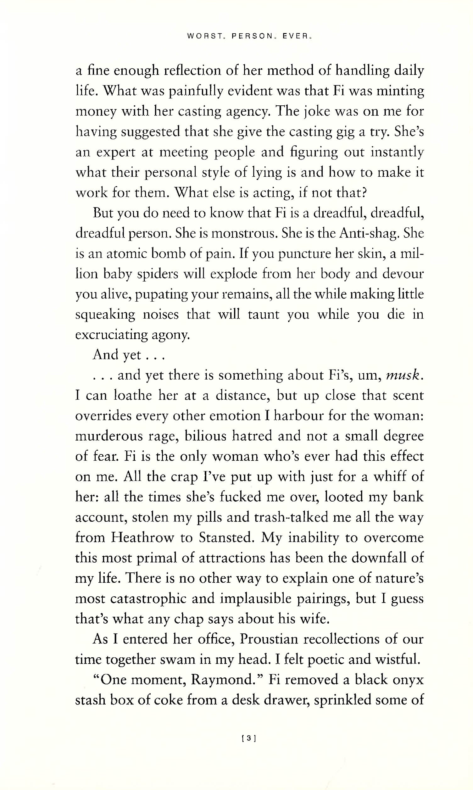 This is a razor-sharp portrait of a morally bankrupt and gleefully wicked modern man, Worst. Person. Ever. is Douglas Coupland's gloriously filthy, side-splittingly funny and unforgettable novel. Meet Raymond Gunt. A decent chap who tries to do the right thing. Or, to put it another way, the worst person ever: a foul-mouthed, misanthropic cameraman, trailing creditors, ex-wives and unhappy homeless people in his wake. Men dislike him, women flee from him. Worst. Person. Ever. is a deeply unworthy book about a dreadful human being with absolutely no redeeming social value. Gunt, in the words of the author, "is a living, walking, talking, hot steaming pile of pure id." He's a B-unit cameraman who enters an amusing downward failure spiral that takes him from London to Los Angeles and then on to an obscure island in the Pacific where a major American TV network is shooting a Survivor-style reality show. Along the way, Gunt suffers multiple comas and unjust imprisonment, is forced to re-enact the 'Angry Dance' from the movie Billy Elliot and finds himself at the centre of a nuclear war. We also meet Raymond's upwardly failing sidekick, Neal, as well as Raymond's ex-wife, Fiona, herself 'an atomic bomb of pain'. Even though he really puts the 'anti' in anti-hero, you may find Raymond Gunt an oddly likeable character.