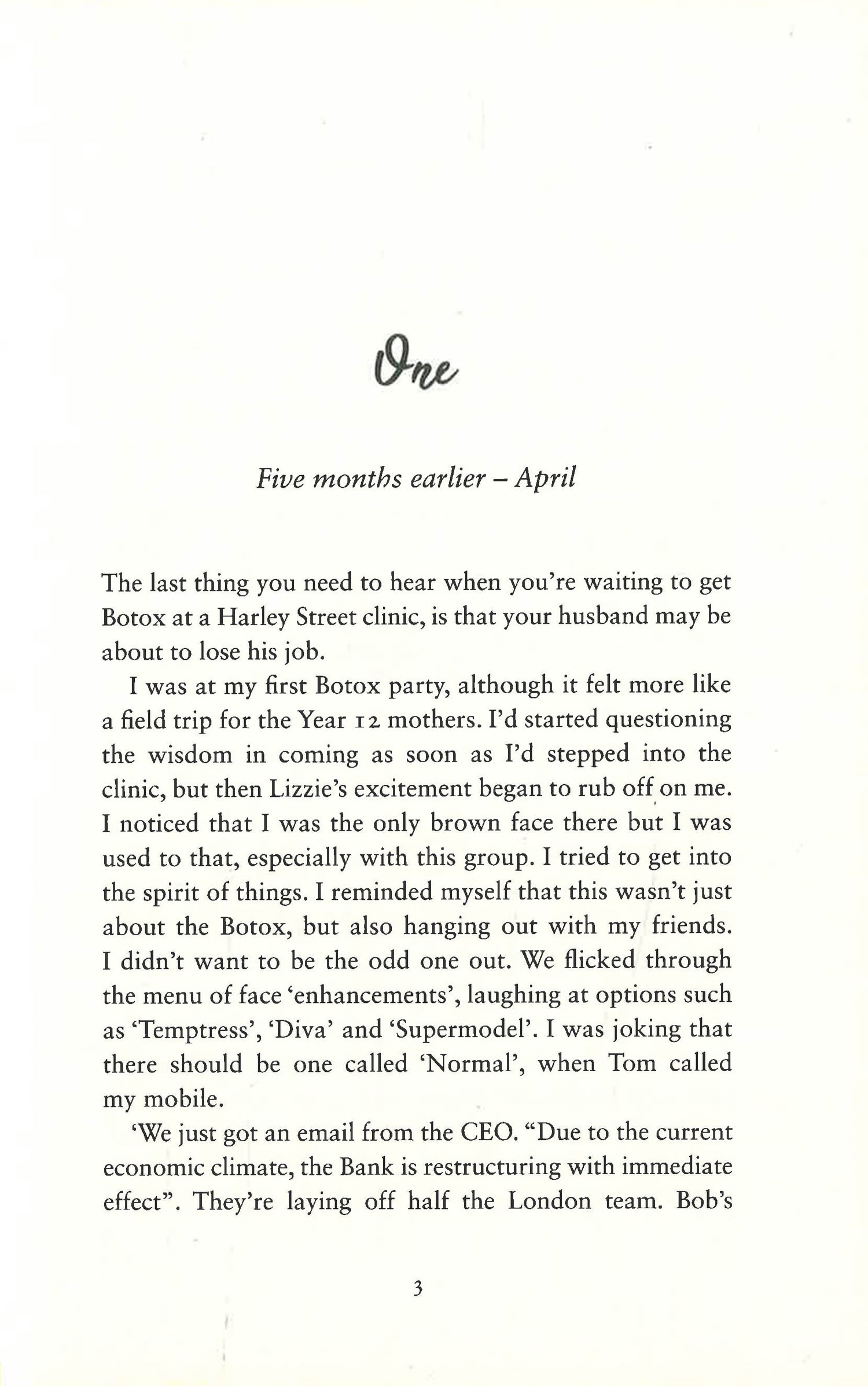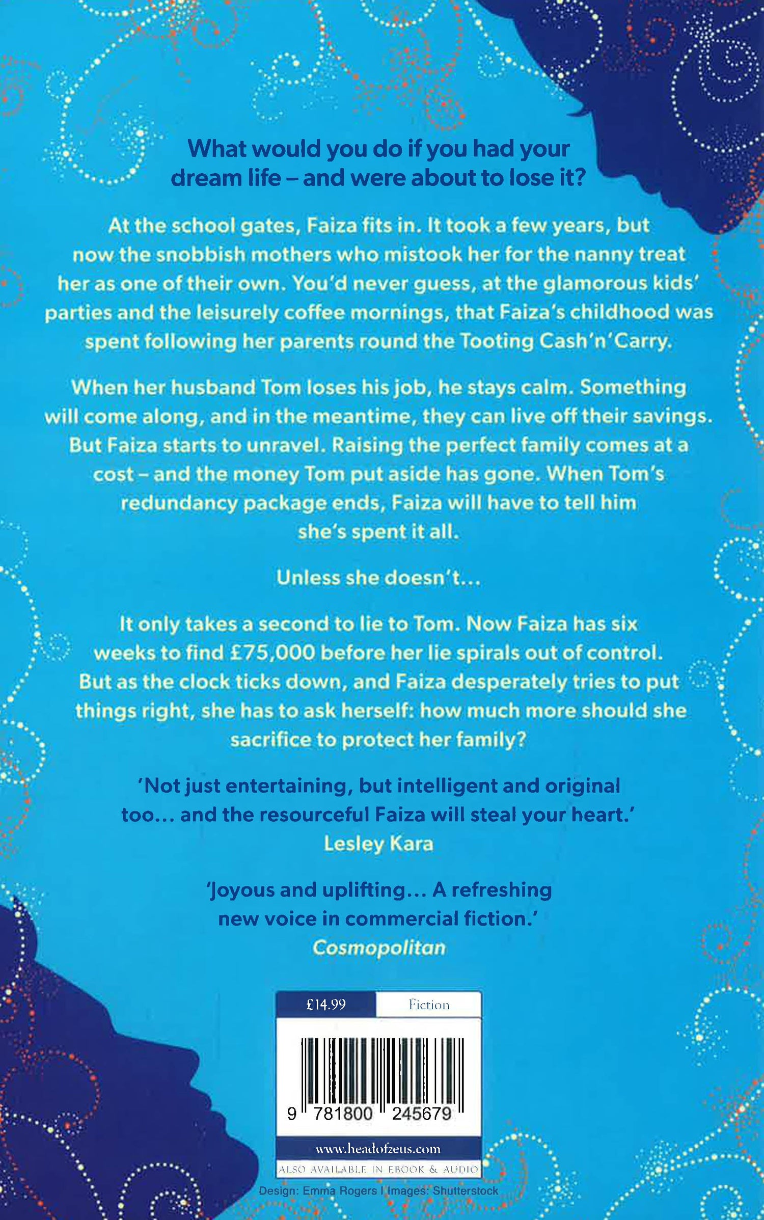 A page-turning, warm-hearted and funny debut novel about Faiza, a glossy banker's wife who must hide the fact she's spent the family's savings when her husband, Tom, loses his job. Faiza has always wanted to fit in. With her banker husband, three beautiful children and gorgeous house in a sought-after corner of London, she's done pretty well at transforming herself into the kind of glamour-puss who mixes with the Yummy Mummies of Wimbledon. But behind the expensive clothes, make-up and furniture lies a big secret. Faiza has been dipping into the family savings account in her attempt to belong, promising herself that one day she'll put the money back. Then, at her first Botox appointment, she gets a call from her husband saying he's lost his job. Now Faiza has six weeks to put it all back before her husband or her friends notice she is penniless. And as the clock ticks down, a different Faiza emerges: one who will learn things about her family, her identity, her hopes and desires that she never knew before.