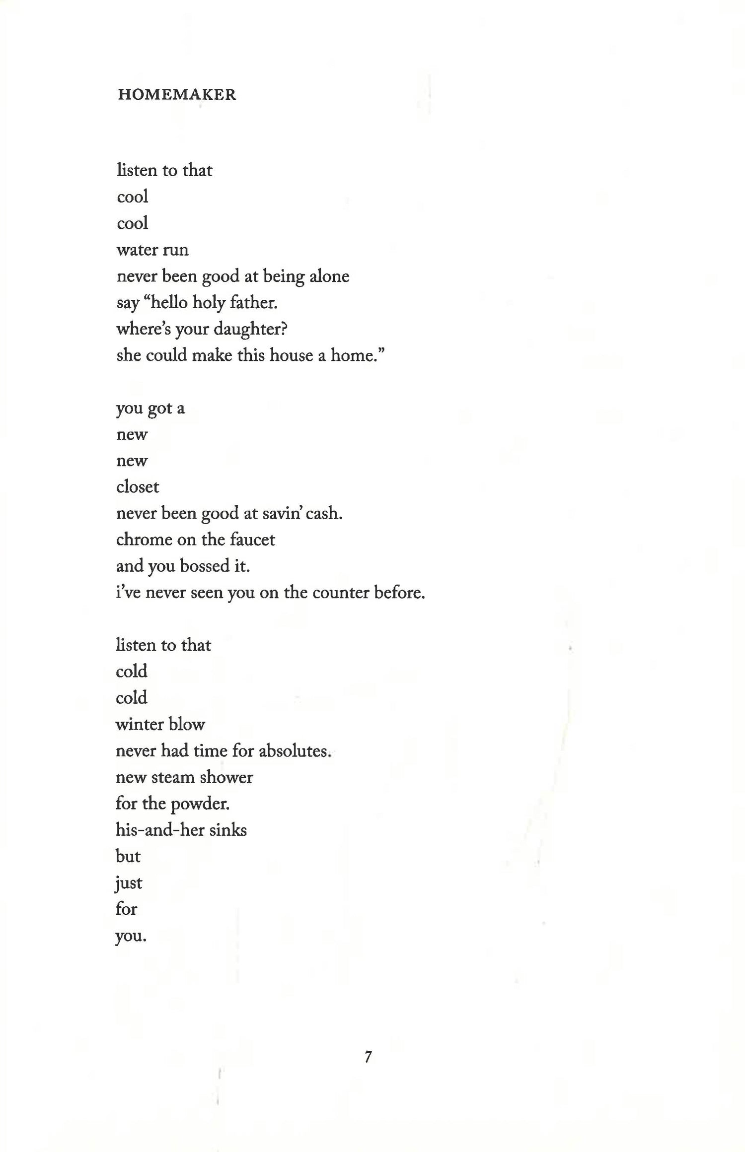 In this debut collection, Halsey bares her soul. Bringing the same artistry found in her lyrics, Halsey’s poems delve into the highs and lows of doomed relationships, family ties, sexuality, and mental illness. More hand grenades than confessions, these autobiographical poems explore and dismantle conventional notions of what it means to be a feminist in search of power.