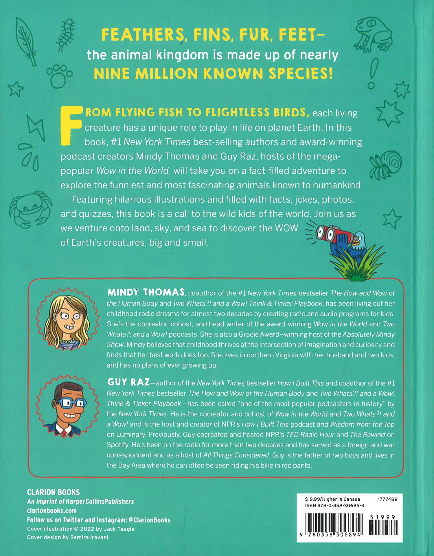 Based on their #1 kids podcast, Wow in the World, hosts Mindy Thomas and Guy Raz take readers on a hilarious, fact-filled, and highly illustrated journey through the animal kingdom!