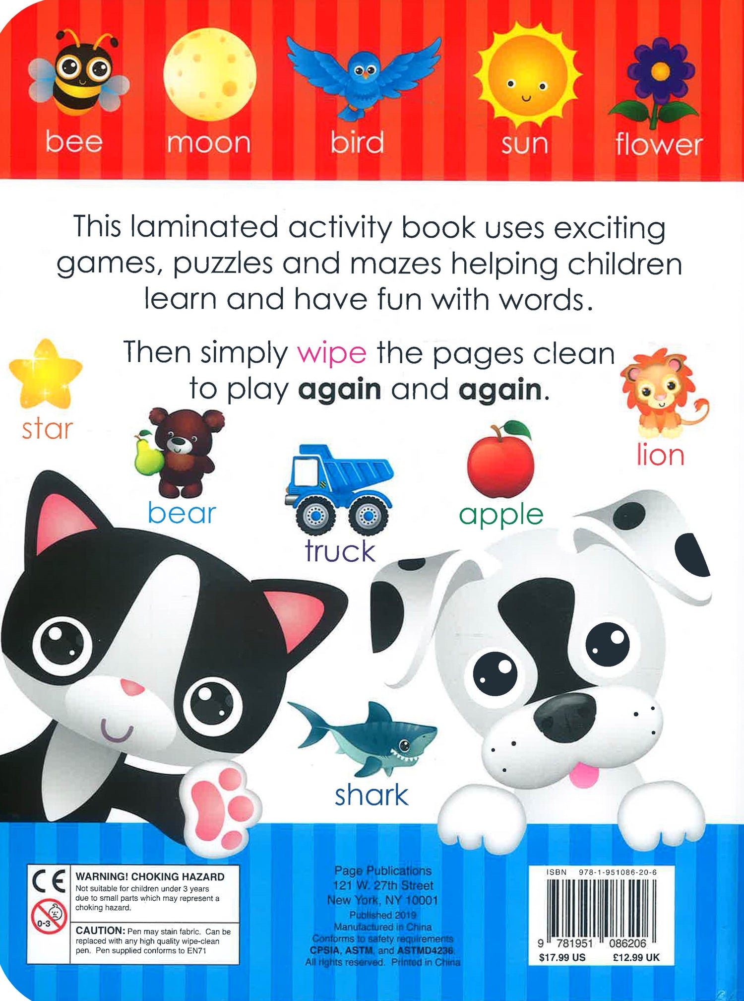 Fun With Words - Write & Wipe Activity Kids Books - Childrens Books, Toddler Books. This laminated activity book uses exciting games, puzzles and mazes helping children learn and have fun with words. Then simply wipe the pages clean to play again and again.