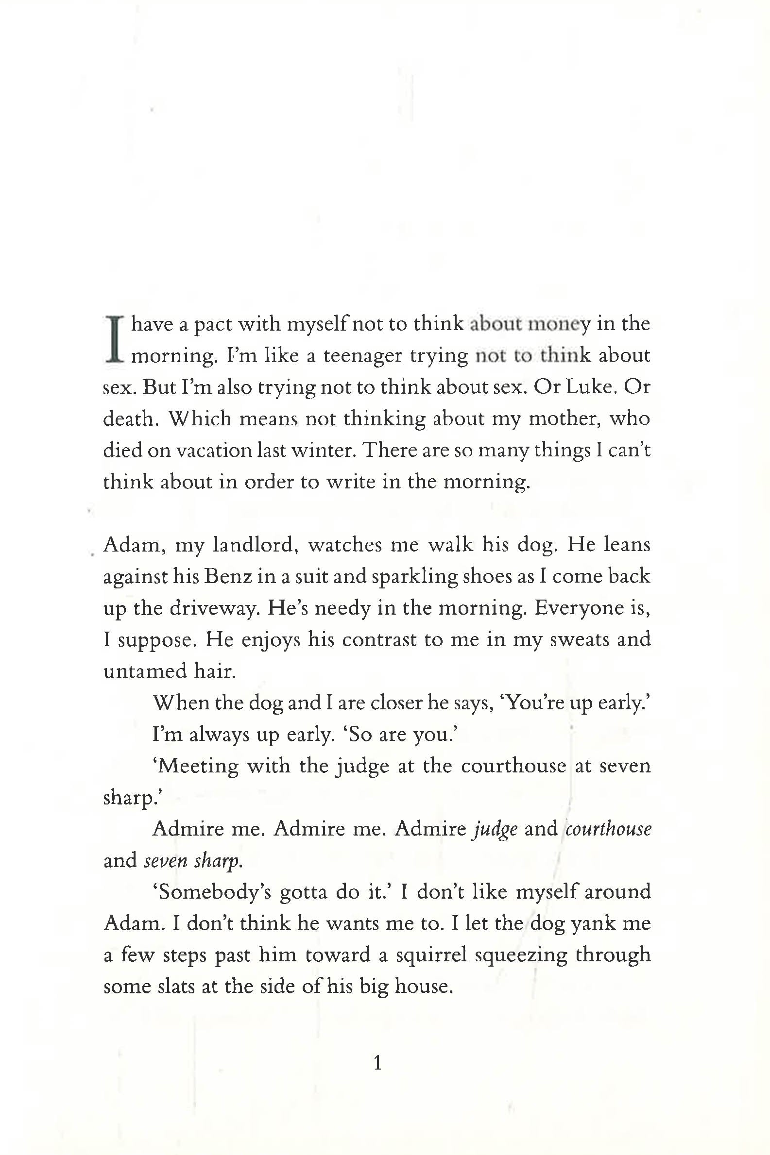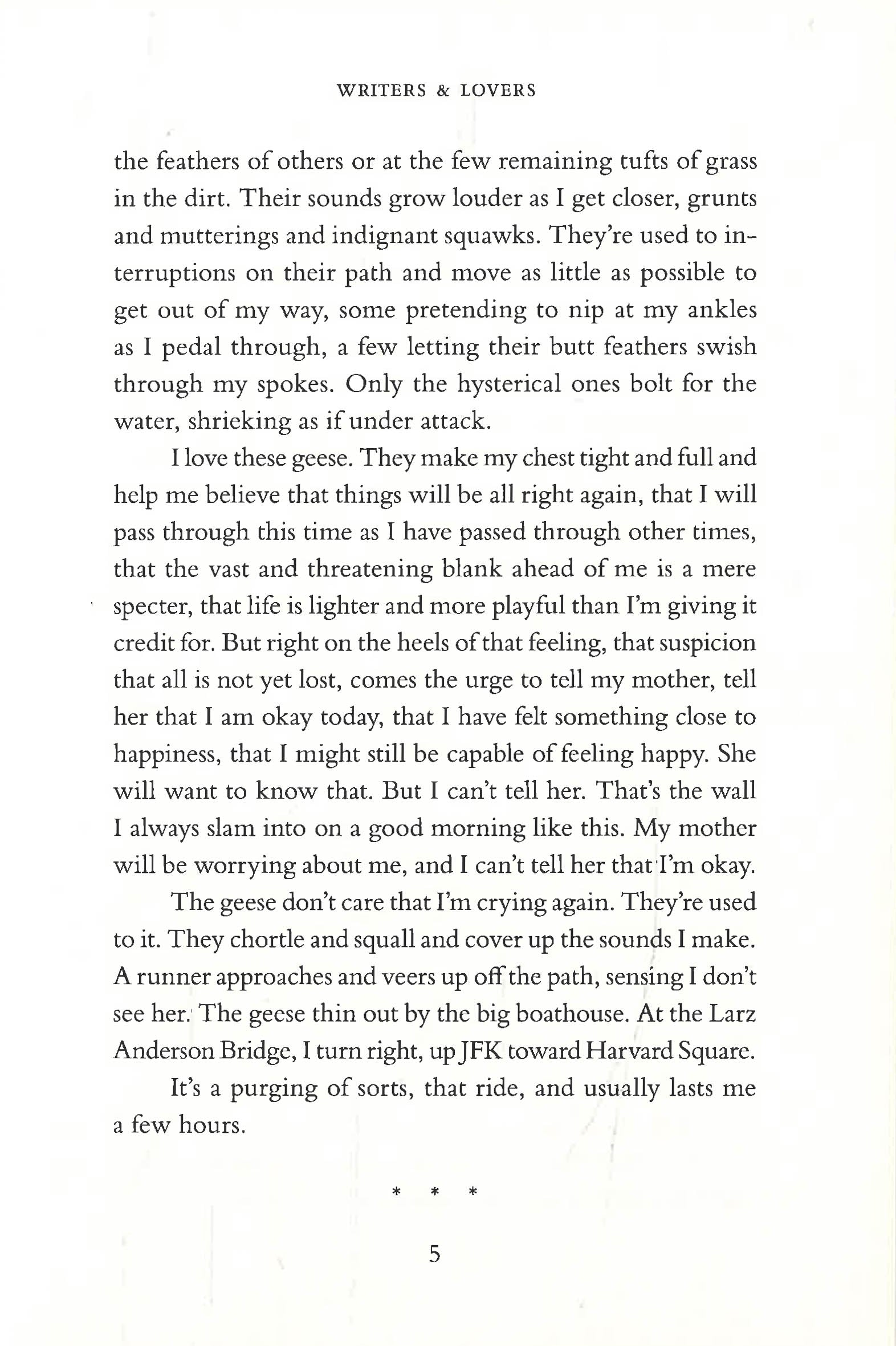 Blindsided by her mother's sudden death, and wrecked by a recent love affair, Casey Peabody has arrived in Massachusetts in the summer of 1997 without a plan. Her mail consists of wedding invitations and final notices from debt collectors. A former child golf prodigy, she now waits tables in Harvard Square and rents a tiny, moldy room at the side of a garage where she works on the novel she's been writing for six years. At thirty-one, Casey is still clutching onto something nearly all her old friends have let go of: the determination to live a creative life. When she falls for two very different men at the same time, her world fractures even more. Casey's fight to fulfill her creative ambitions and balance the conflicting demands of art and life is challenged in ways that push her to the brink.