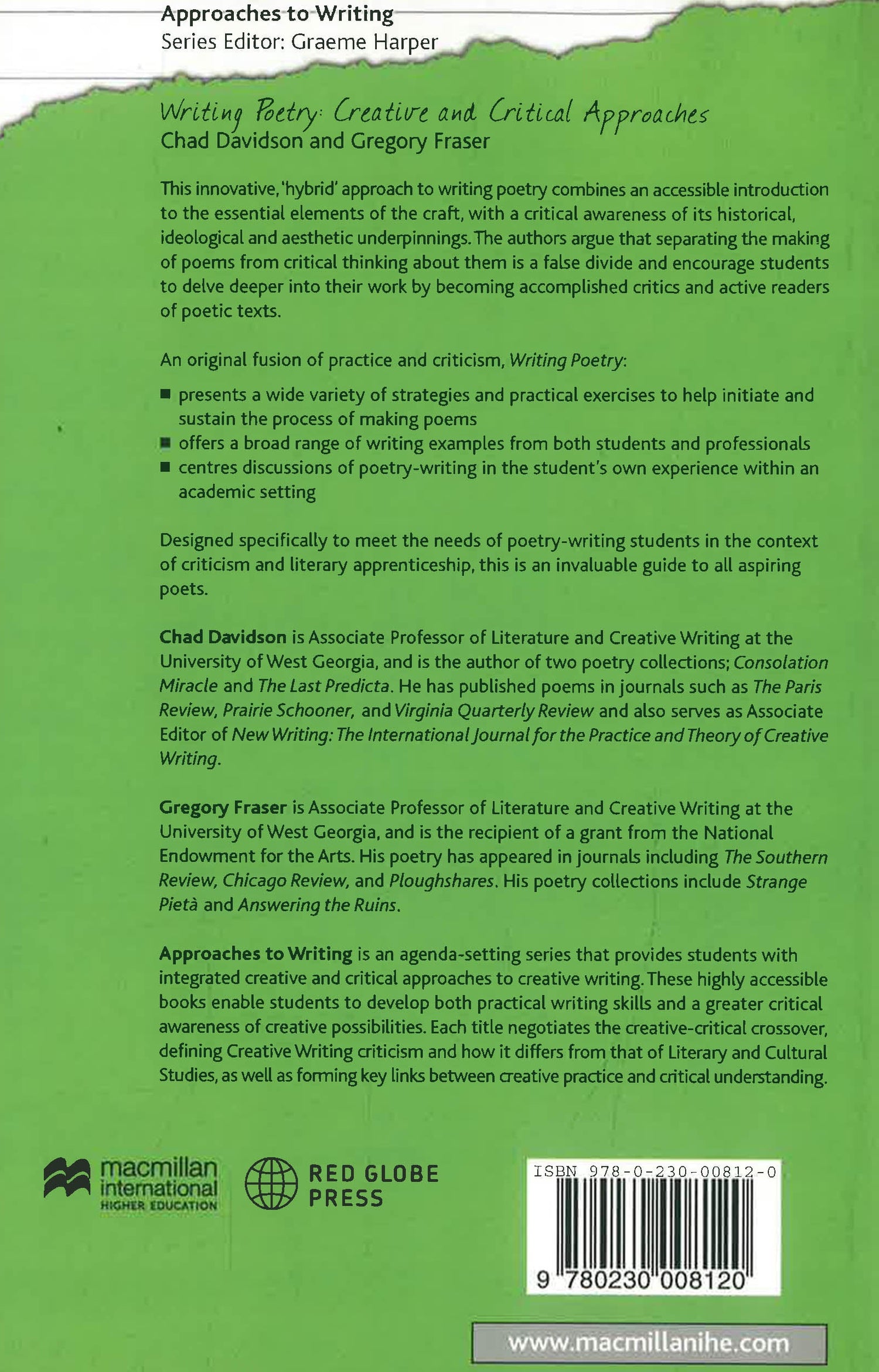 Writing Poetry combines an accessible introduction to the essential elements of the craft, with a critical awareness of its underpinnings. The authors argue that separating the making of poems from critical thinking about them is a false divide