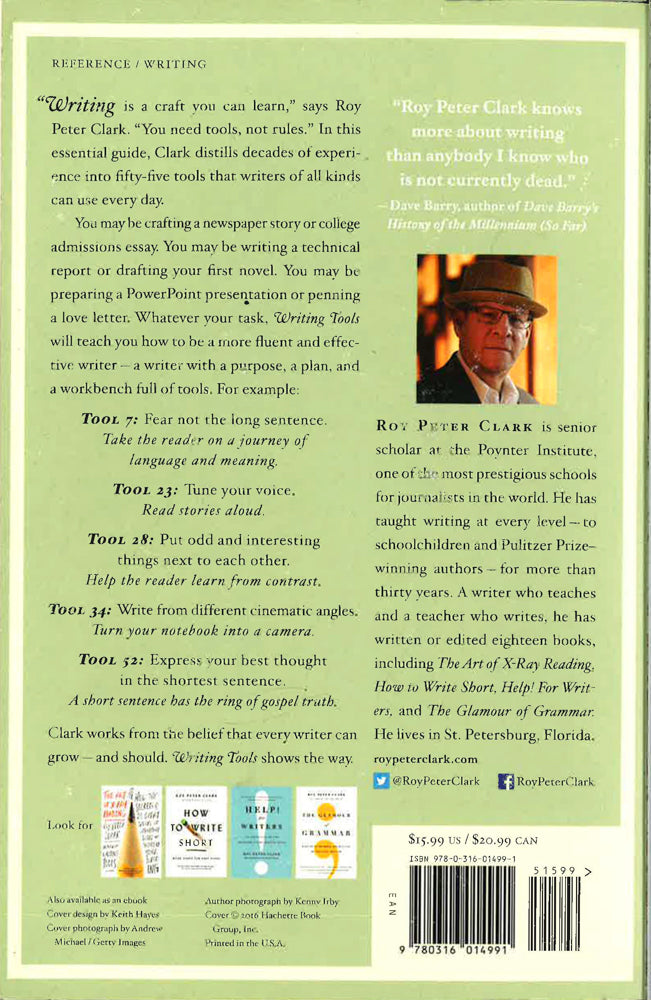 Tools Not Rules' says Roy Peter Clark, vice president and senior scholar at the Poynter Institute, the esteemed school for journalists and teachers of journalists. Clark believes that everyone can write well with the help of a handful of useful tools that he has developed over decades of writing and teaching. If you google 'Roy Peter Clark, Writing Tools', you'll get an astonishing 1.25 million hits. That's because journalists everywhere rely on his tips to help them write well every day - in fact he fields emails from around the world from grateful writers.