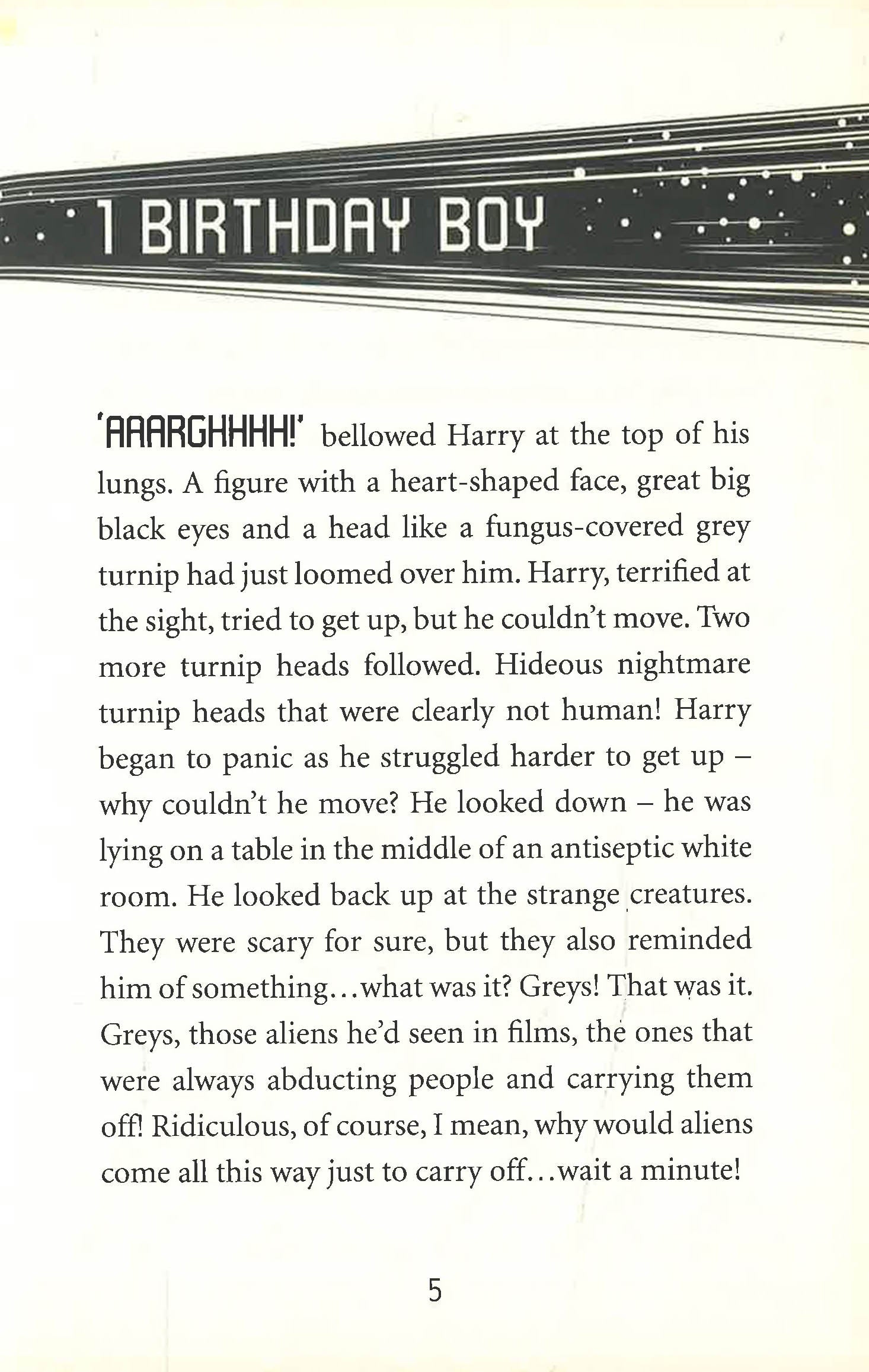 Abducted by aliens, Harry wakes up on his birthday marooned on a spaceship. His only companions: two freaky princess clones, a weird alien-fish-kangaroo hybrid with delusions of grandeur and a ship's computer with a serious attitude problem. It's the worst birthday ever.