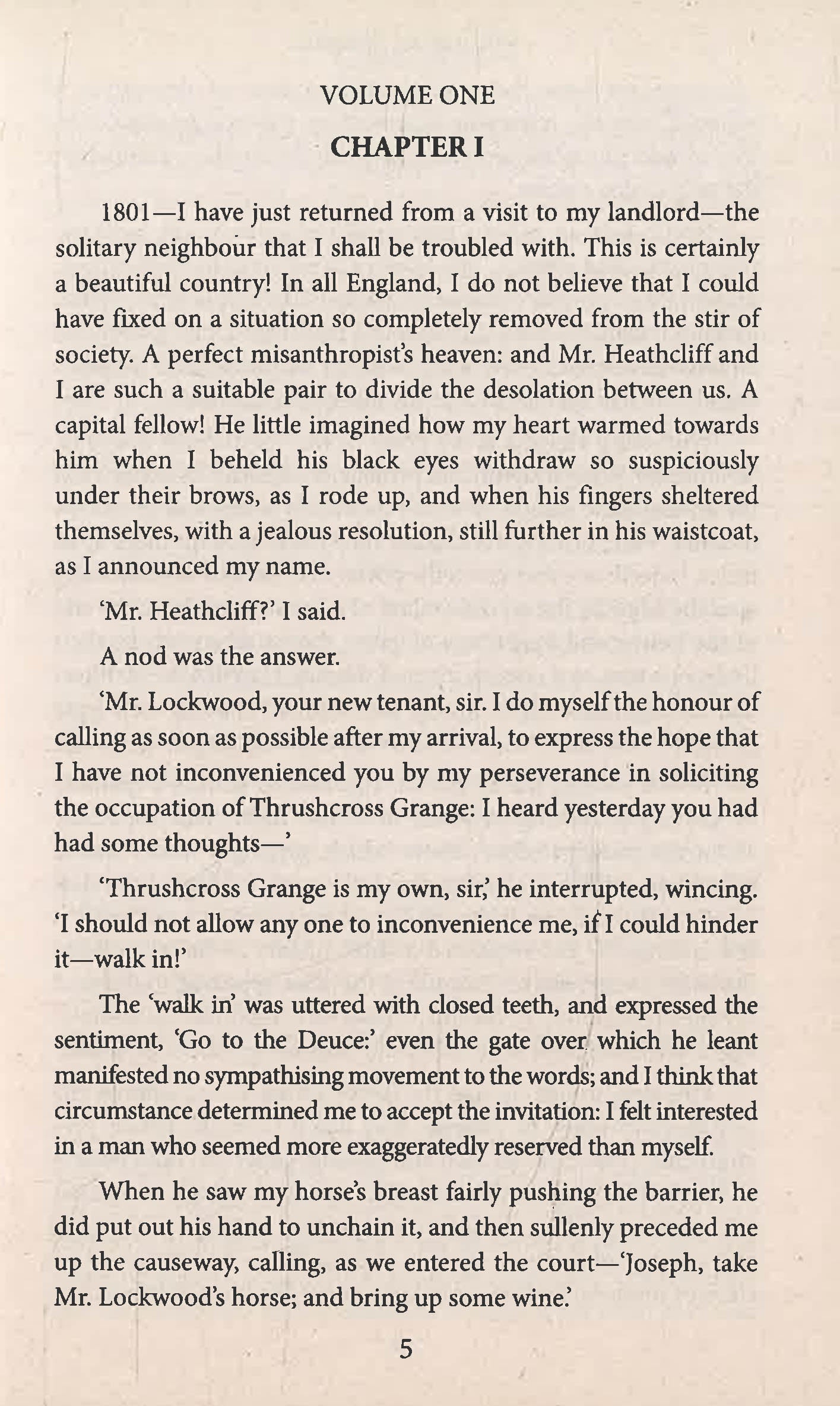 The Lockwood, the new tenant of Thrushcross Grange, situated on the bleak Yorkshire moors, is forced to seek shelter one night at Wuthering Heights, the home of his landlord. There he discovers the history of the tempestuous events that took place years before. What unfolds is the tale of the intense love between the gypsy foundling Heathcliff and Catherine Earnshaw. Catherine, forced to choose between passionate, tortured Heathcliff and gentle, well-bred Edgar Linton, surrendered to the expectations of her class. As Heathcliff's bitterness and vengeance at his betrayal is visited upon the next generation, their innocent heirs must struggle to escape the legacy of the past.