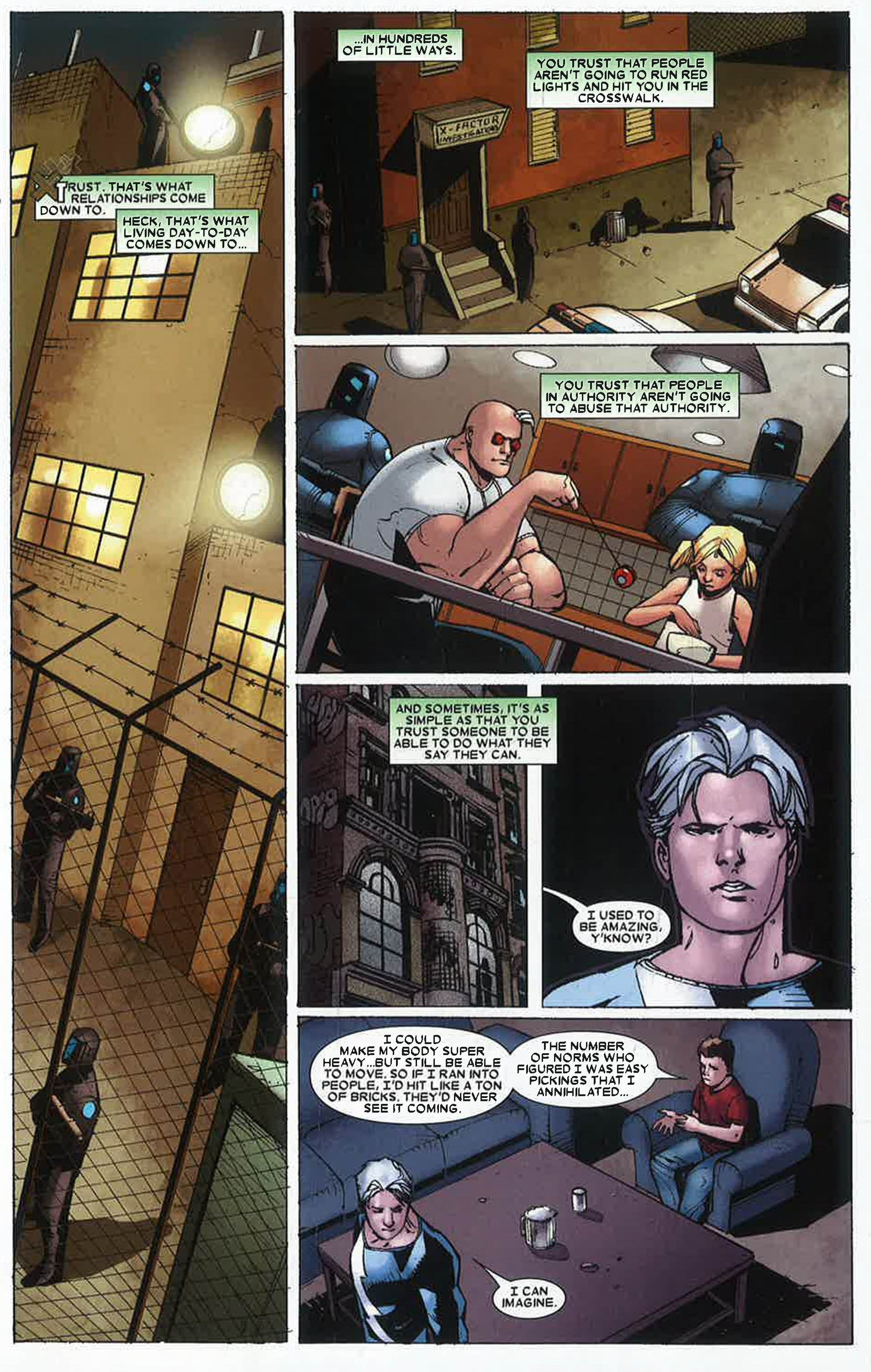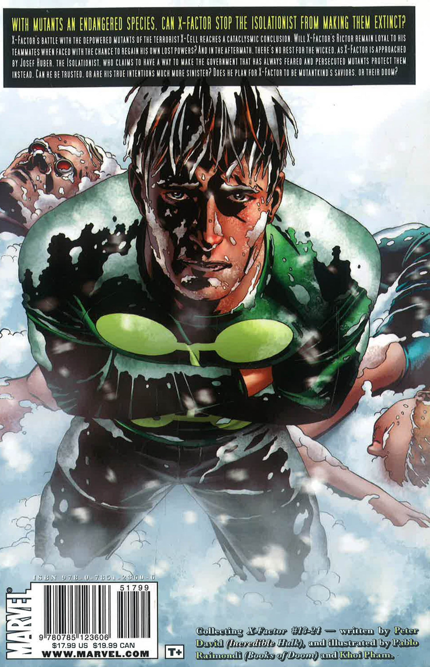 With Mutant Town under siege and the X-Cell having taken refuge there, X-Factor races both the clock and their own divided allegiances as they try to stave off the very real possibility of every former mutant being rounded up and imprisoned as a potential terrorist.