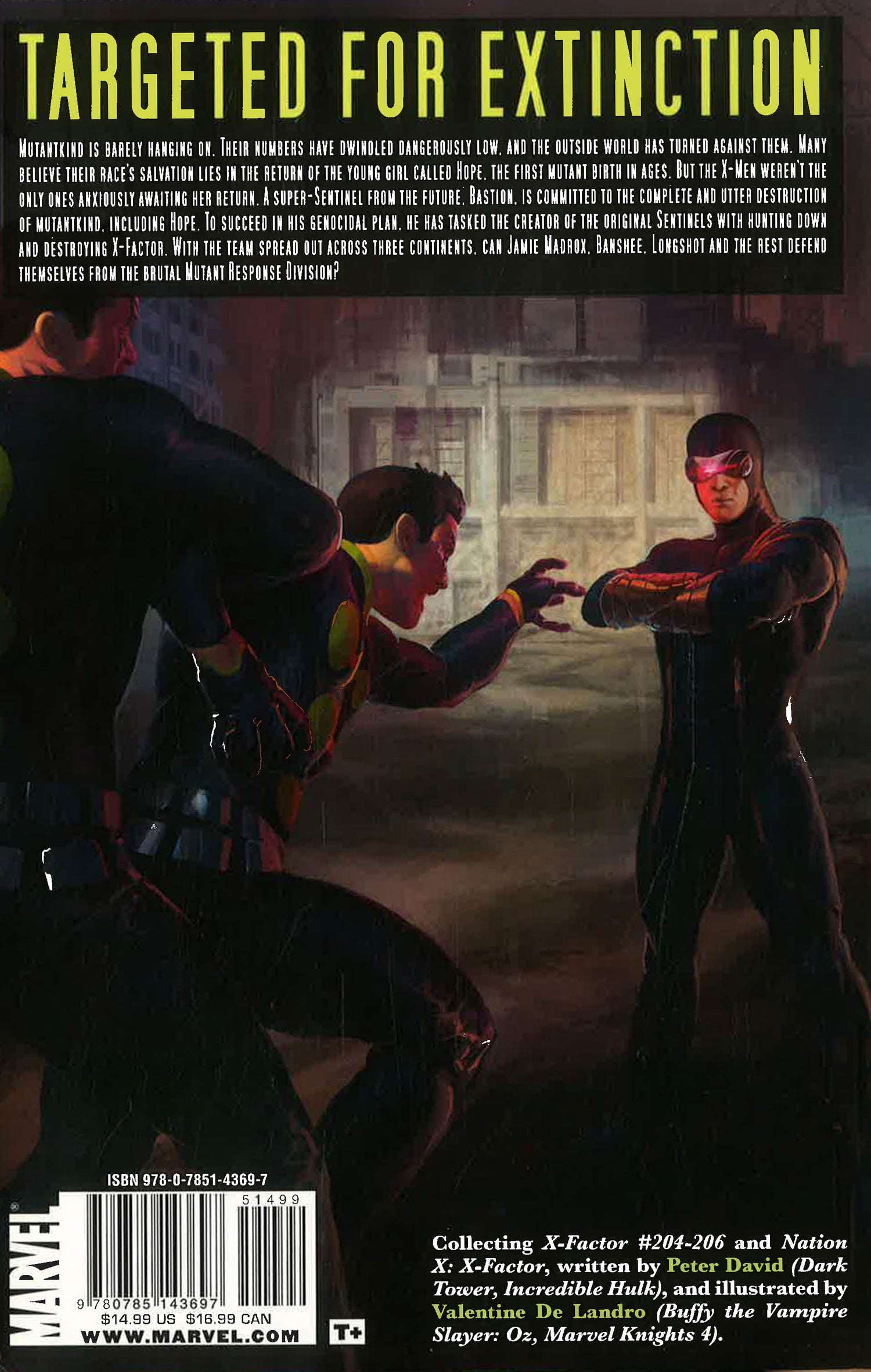 You're Bolivar Trask, the reanimated leader of the Mutant Response Division. Your mission: Kill every member of X-Factor. How to accomplish that without collateral damage? Easy: hire the team for what seems to be a routine case that will send them into a certain death trap. Problem solved. And in NATION X, Cyclops invites the world's only mutant detective agency to relocate to their floating island retreat and take up residence there. But will Madrox and his team believe that it's the best place for them? What old faces will pop up, and what old acquaintances will be renewed? And will there even be a Utopia left when the mysterious Crone shows up and threatens to bring the entire place crashing down into the Pacific?