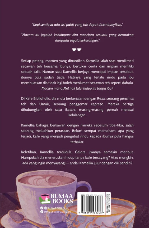 Setiap petang, momen yang dinantikan Kamellia ialah saat menikmati secawan teh bersama ibunya, bertukar cerita dan impian memiliki sebuah kafe. Namun saat Kamellia berjayamencapai impian tersebut, ibunya pula sudah tiada. Hatinya yang terlalu rindu pada ibu,membuatkan dia tidak lagi boleh menikmati secawan teh seperti dahulu.Macam mana Mel naklalui hidup ini tanpa ibu?