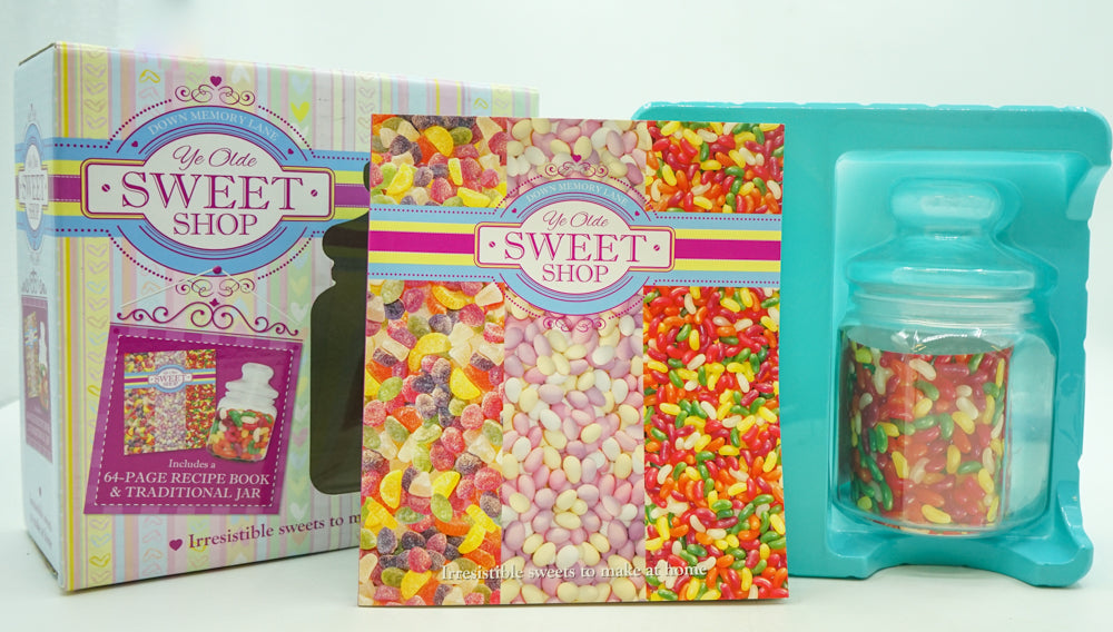 Whip up the delights of the sweet shop in your own kitchen with this scrumptious selection of confectionery. Fill your home with irresistible scents and tempting treats using this wonderful set, includes a 64 page vintage-inspired cookbook and a classic sweetie jar for your homemade creations. From fizzy sherbet lemons that tickle your tongue to velvety chocolate truffles that melt in your mouth, Ye Olde Sweet Shop is packed with well-loved, traditional sweets from your childhood…Welcome to confectionery heaven.