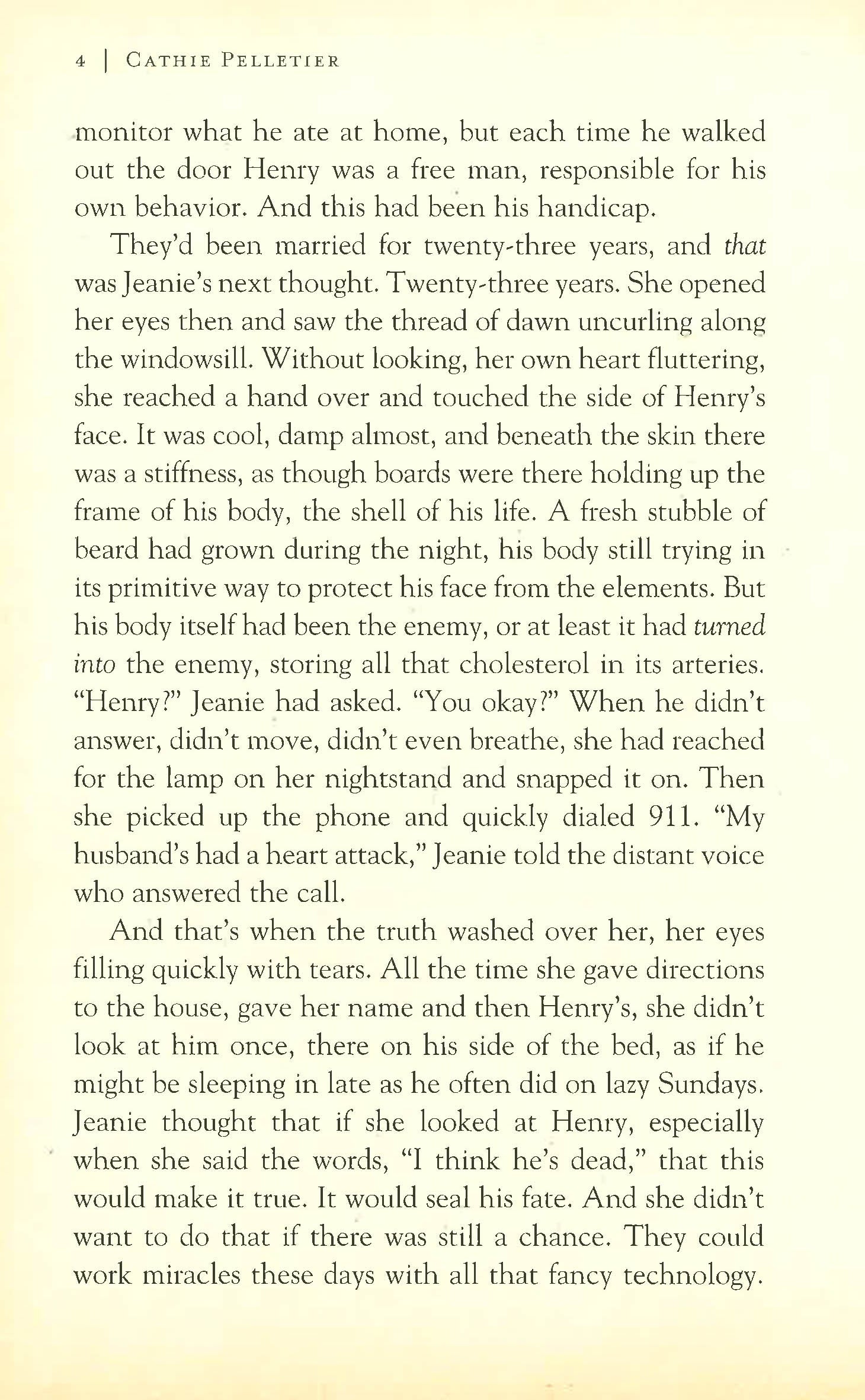 With her trademark wry wit and wisdom, Cathie Pelletier has crafted an elegant and surprisingly uplifiting portrait of the many strange and inspiring forms that grief can take in its journey toward healing.
