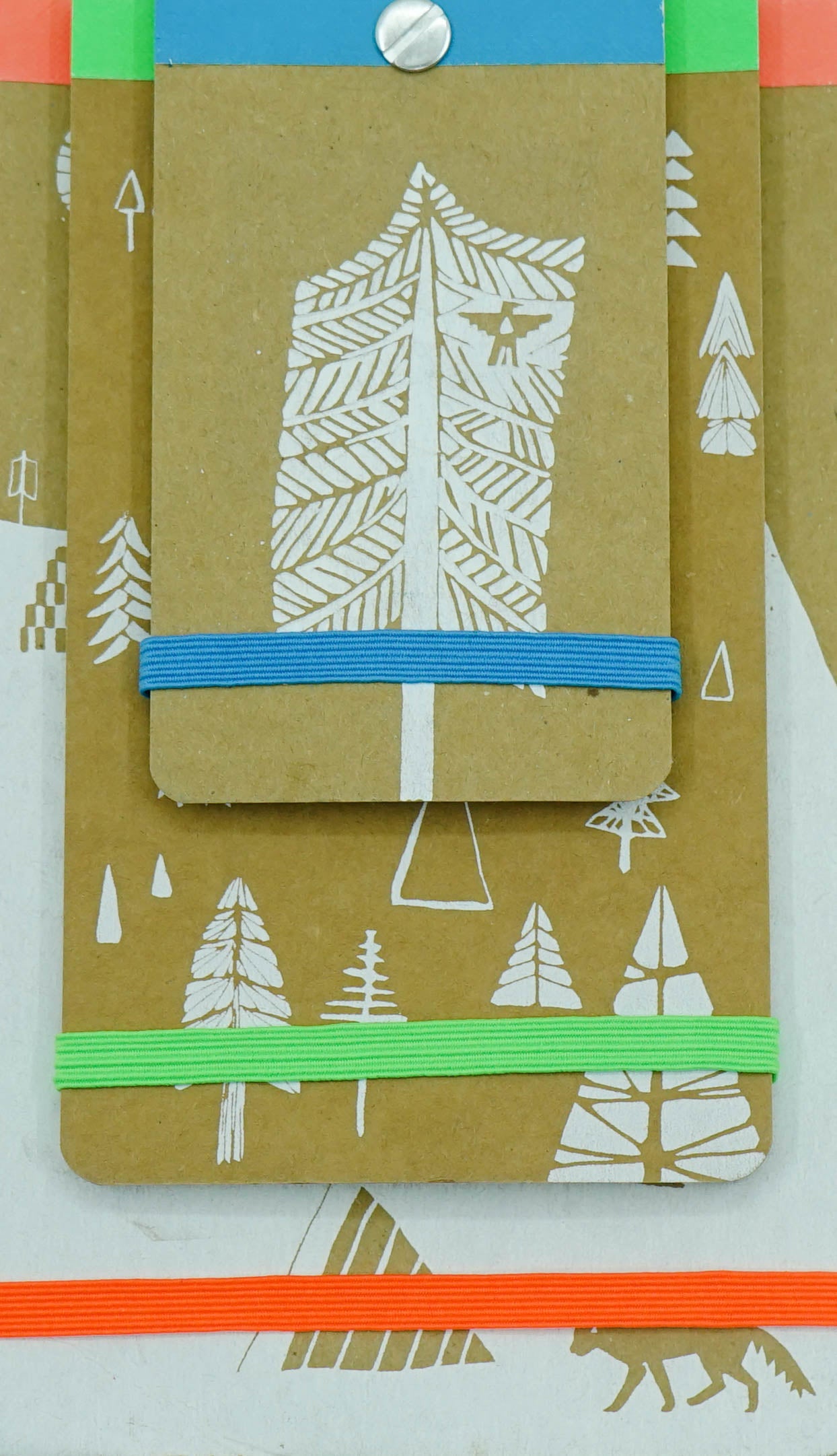 At once rustic, modern, and practical, these 3 notepads feature perforated kraft paper interior pagesperfect for notes and messagesand sturdy covers printed with iconic woodland imagery. A removable screw runs through the spine of each pad so that notetakers can carry them all together or take one on the go.