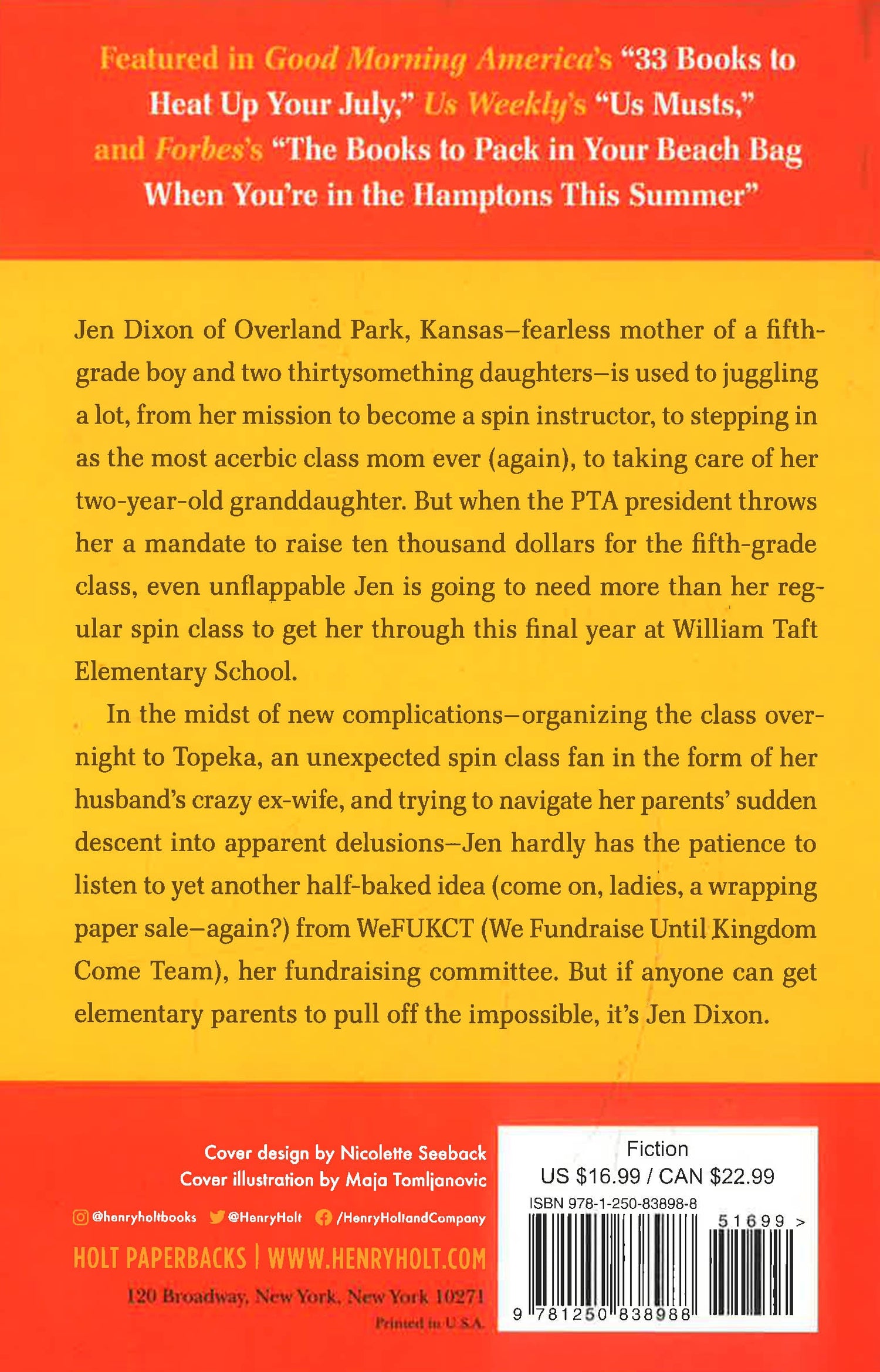 Jen Dixon of Overland Park, Kansas―fearless mother of a fifth-grade boy and two thirty-something daughters―is used to juggling a lot, from her mission to become a spin instructor, to stepping in as the most acerbic class mom ever (again), to taking care of her two-year-old granddaughter. But when the PTA president throws her a mandate to raise $10,000 for the fifth-grade class, even unflappable Jen is going to need more than her regular spin class to get her through this final year at William Taft Elementary School.